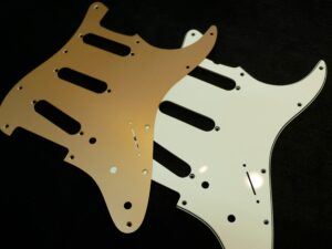 アルミやブラスなど金属製やカラーアノダイズドピックガードの製作も可能です。