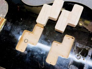 複雑なザグリ加工や埋め戻し、インレイ加工や指板交換、部品の加工。特殊なパーツの組み込みなど対応可能です。