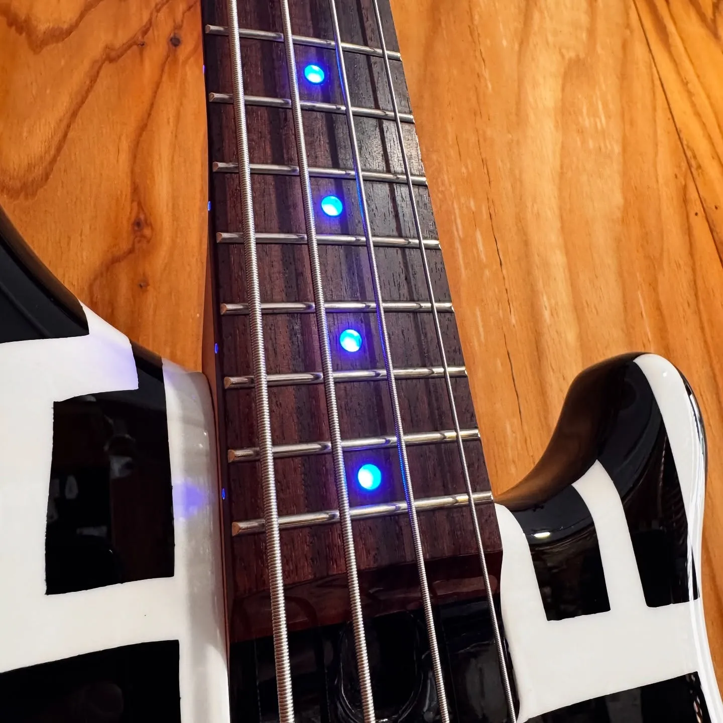 ポジションマークにLEDを後加工で組み込みできます。指板をそのままでLEDの組み込みから指板を交換してより高度な組み込みも可能。