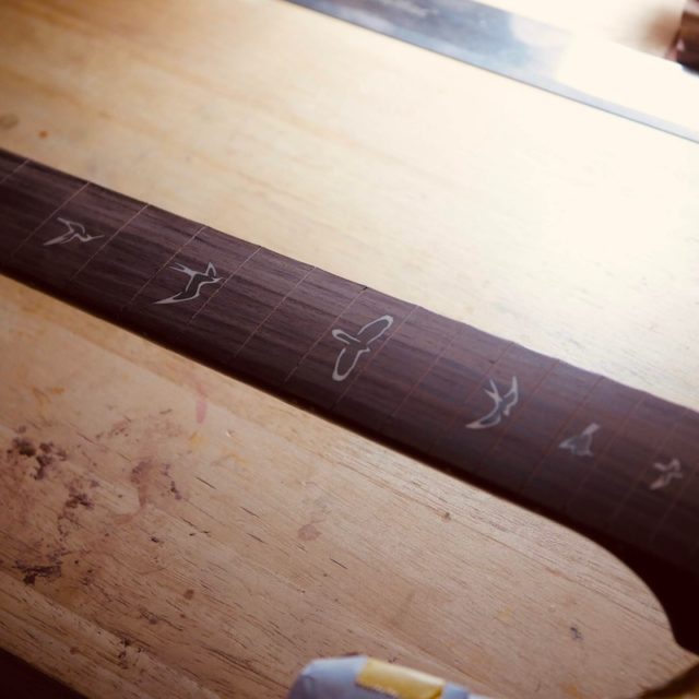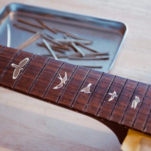 以前にも他のギターに打ち替えているというものと同じJESCARのステンレスフレットを使用しました。