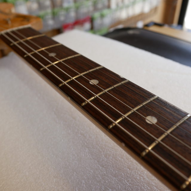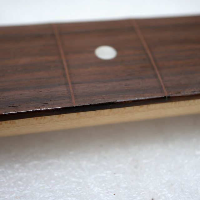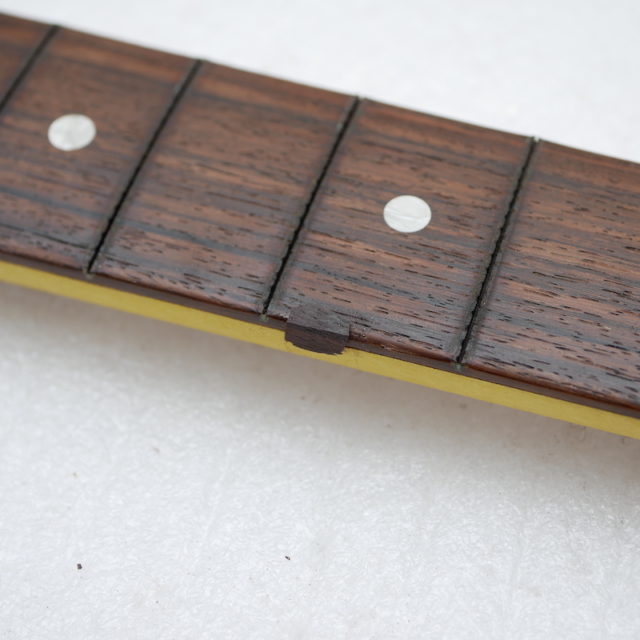 指板欠けの修正とフレット交換をご依頼いただきました。