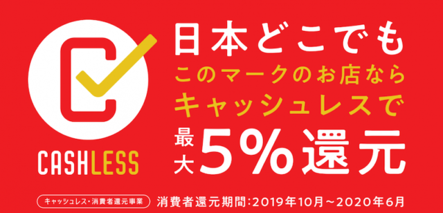 2020年6月まで、キャッシュレス決済のお客様は5%還元を受けられます。