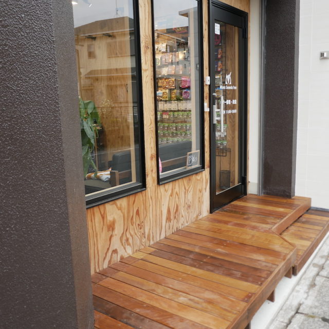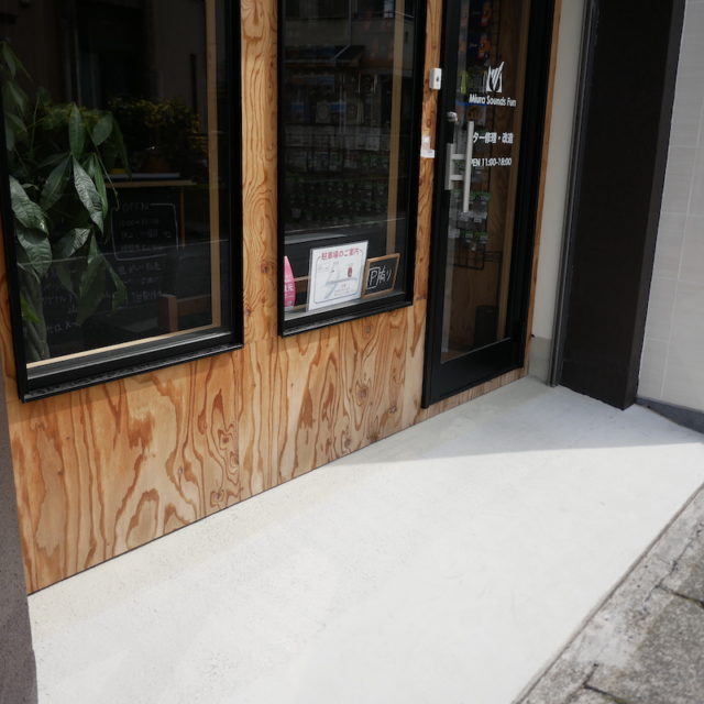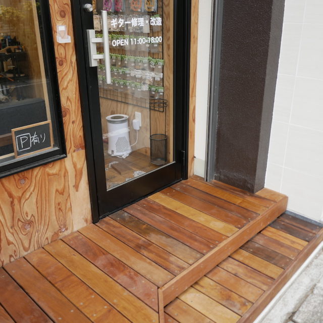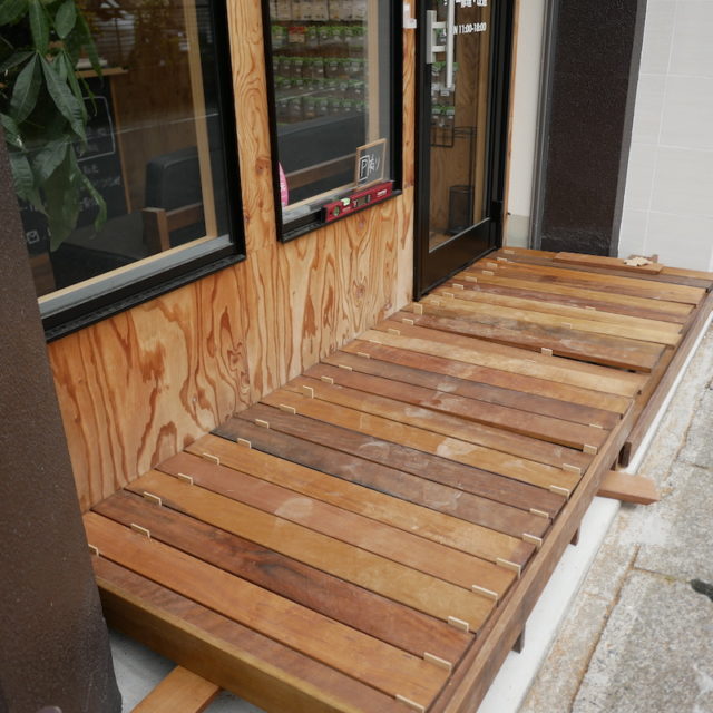 店の前がコンクリートのスロープになっていて、歩きにくいし滑ったら危ないのでウッドデッキを製作。