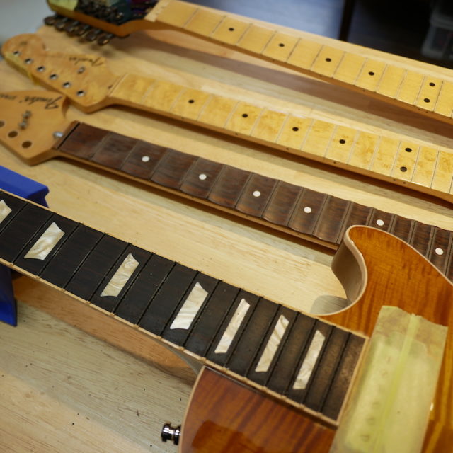 ブリッジやペグなど、種類の多いパーツはきちんとギターに適合するものをお取り寄せします。