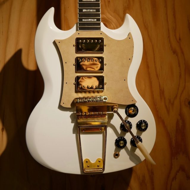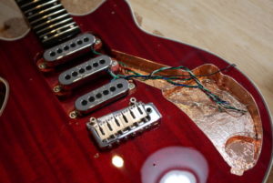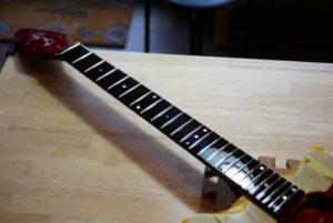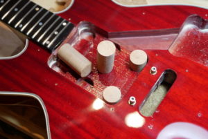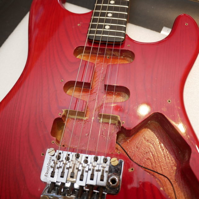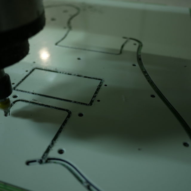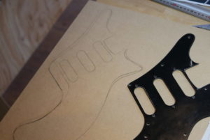今回はピックガードの製作とそれに伴いザグリの拡張加工をしました。