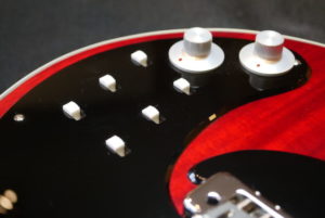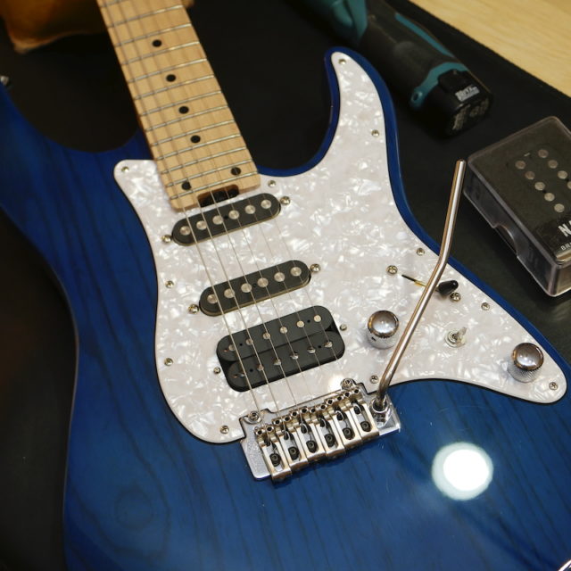 フロントピックアップザグリはシングルからハムバッカーサイズに広げました。