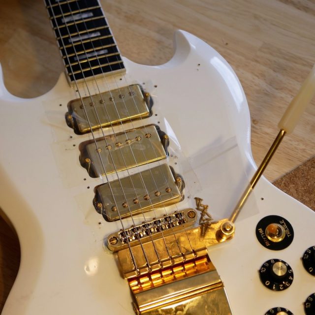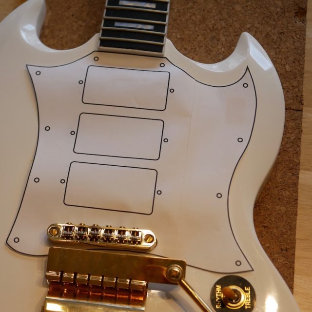 ピックガードはただコピーを作るだけではなく、細かい部分を本体に合わせて修正して製作しています。