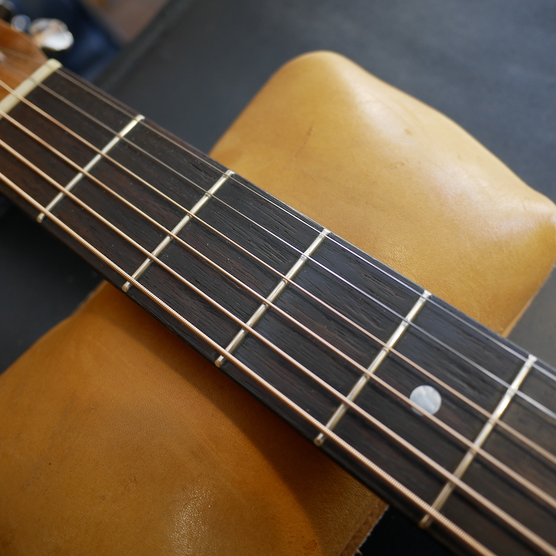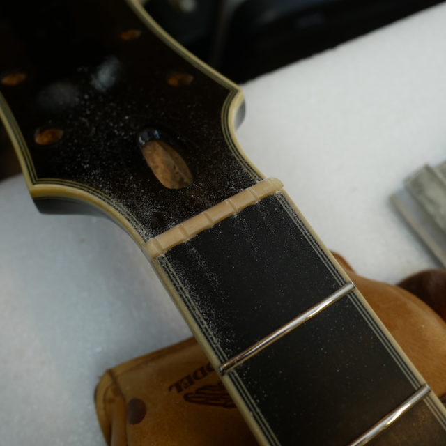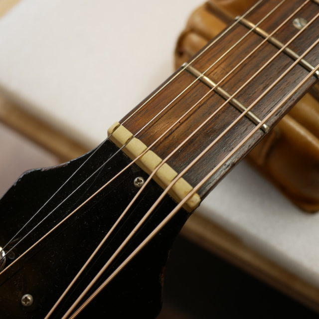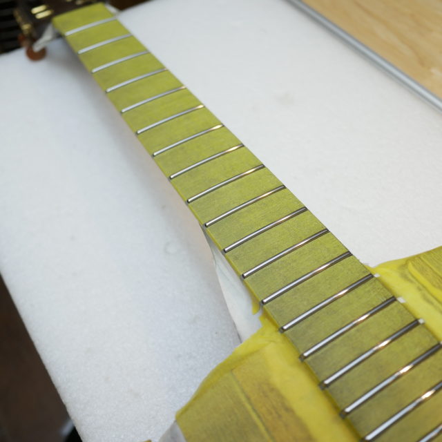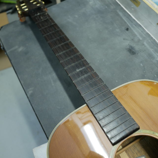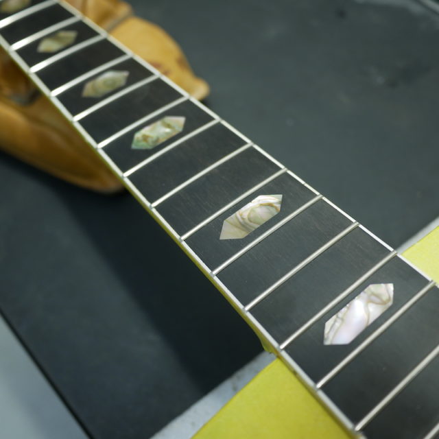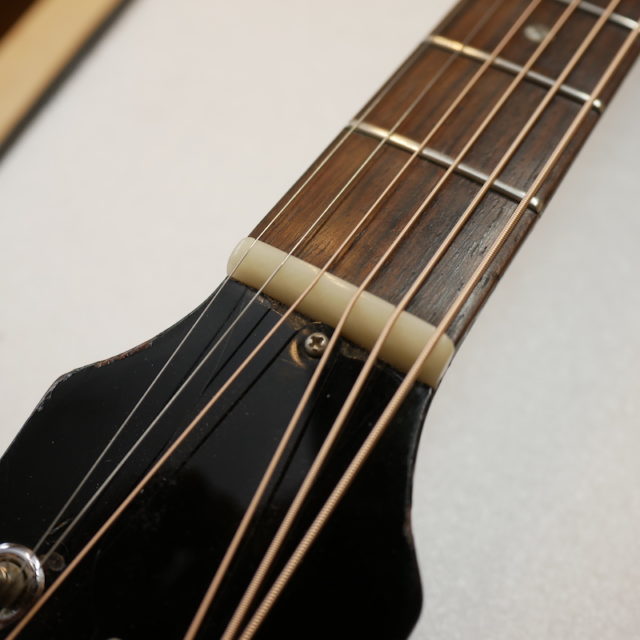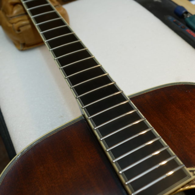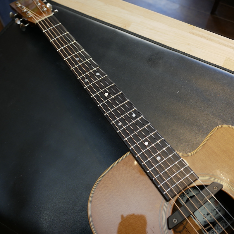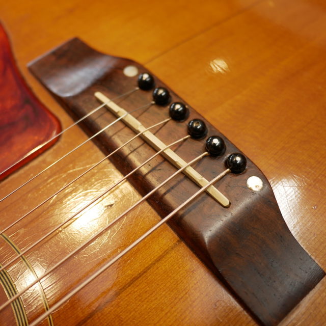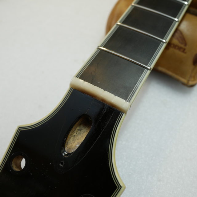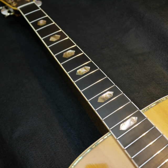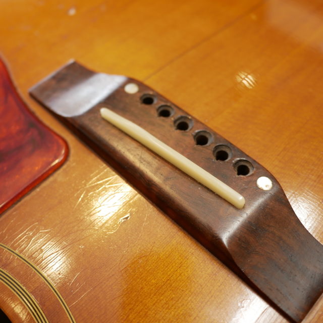 元々ついていたピックガードは、反って剥がれてしまったそうで、今貼ってるものも別で製作したもです。