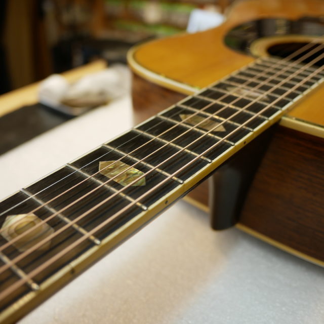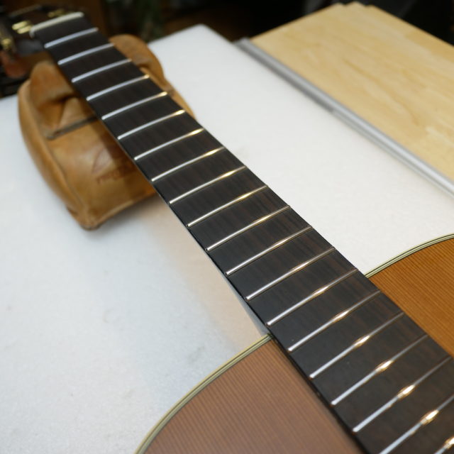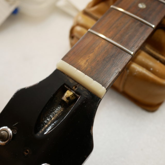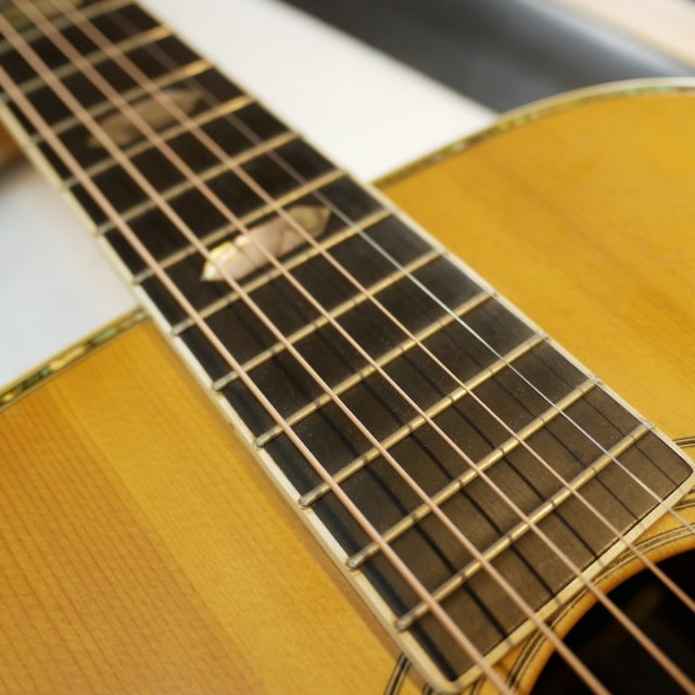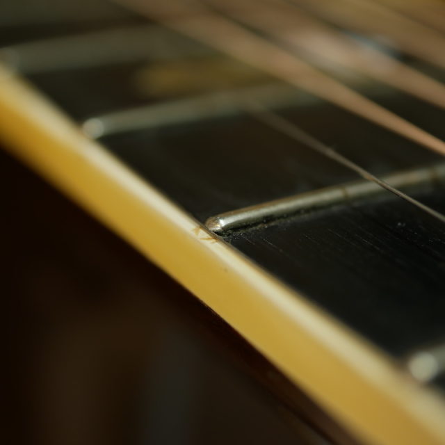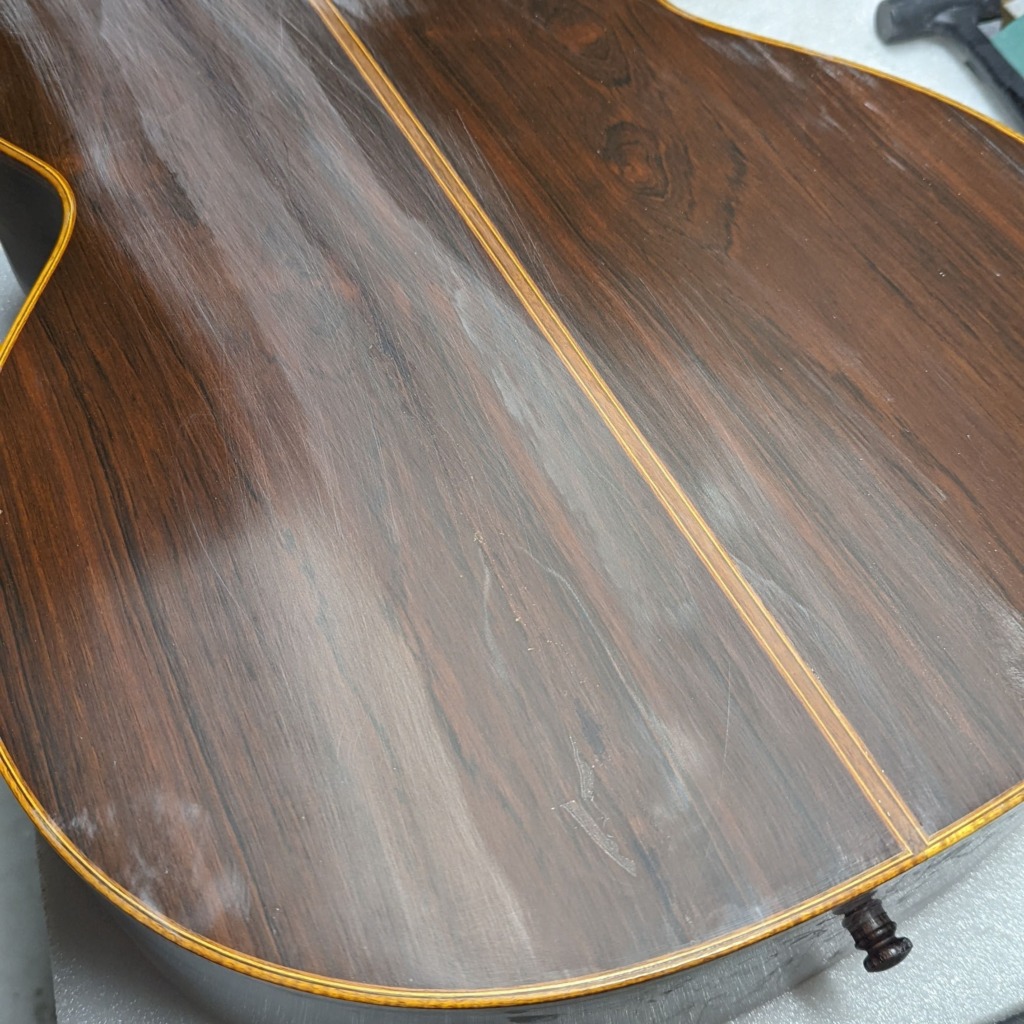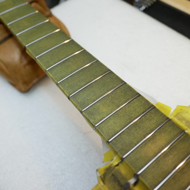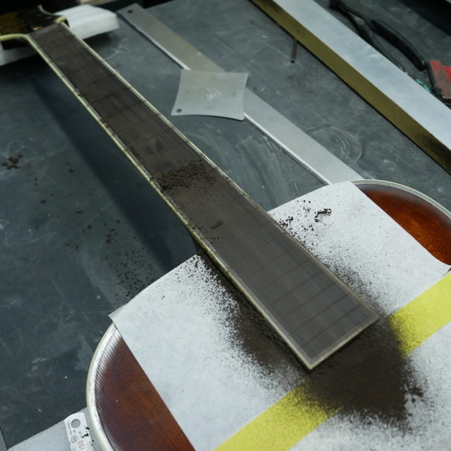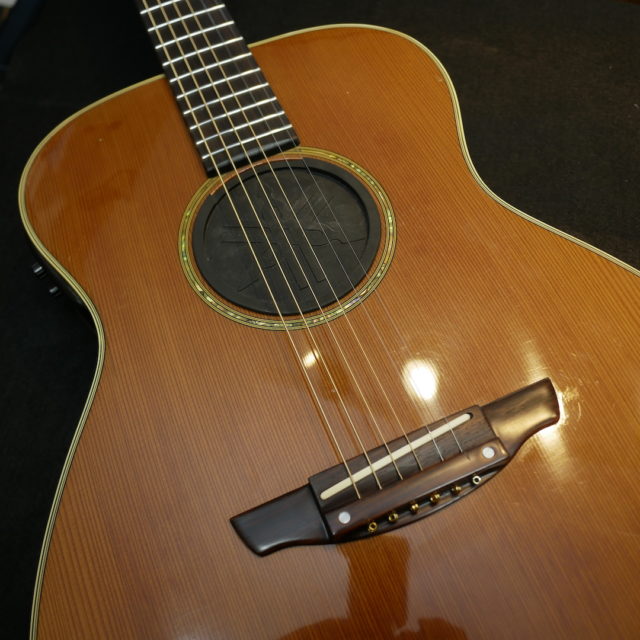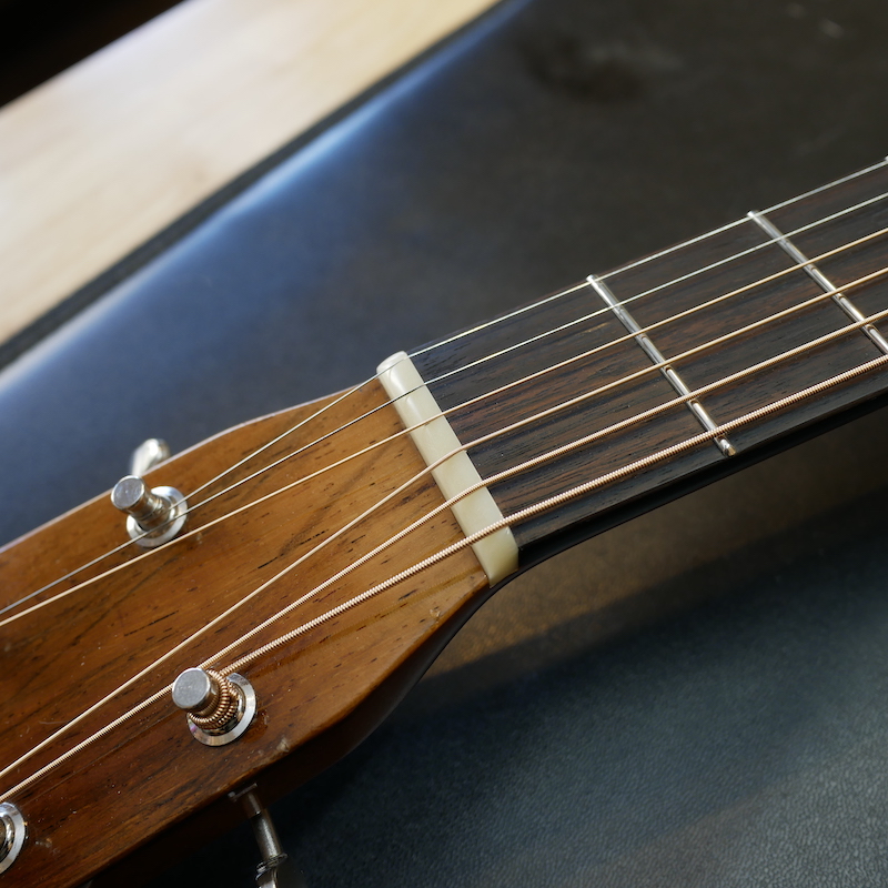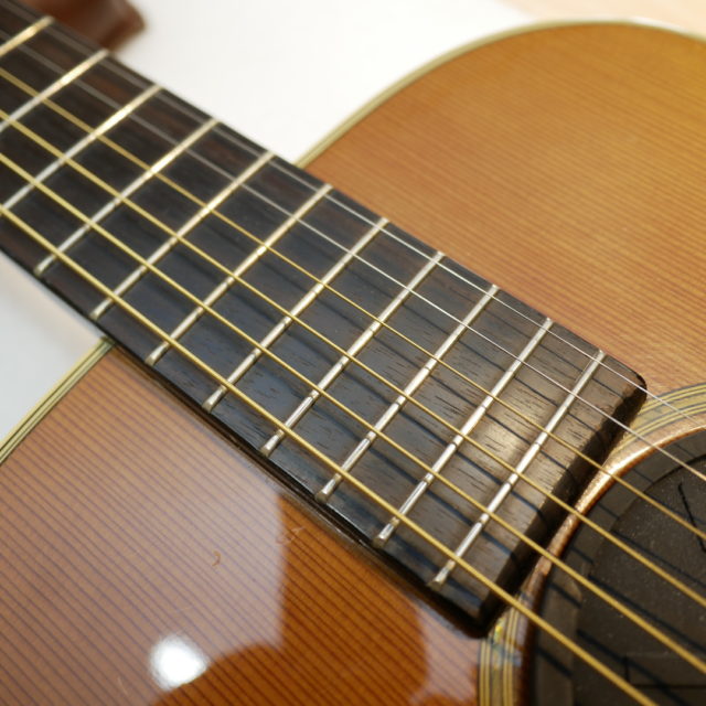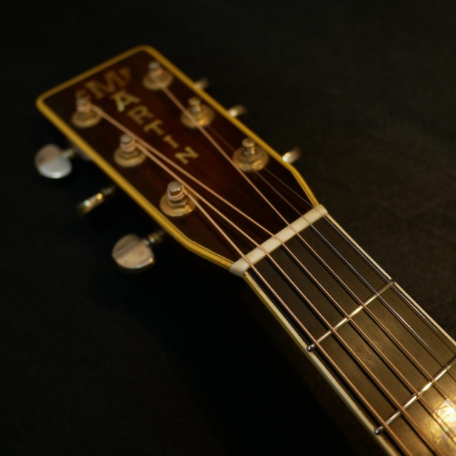 元々ついていたピックガードは、反って剥がれてしまったそうで、今貼ってるものも別で製作したもです。