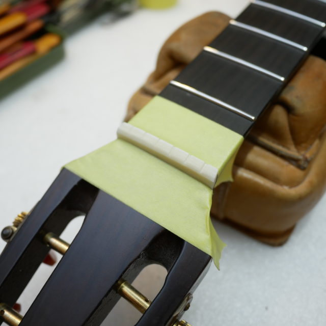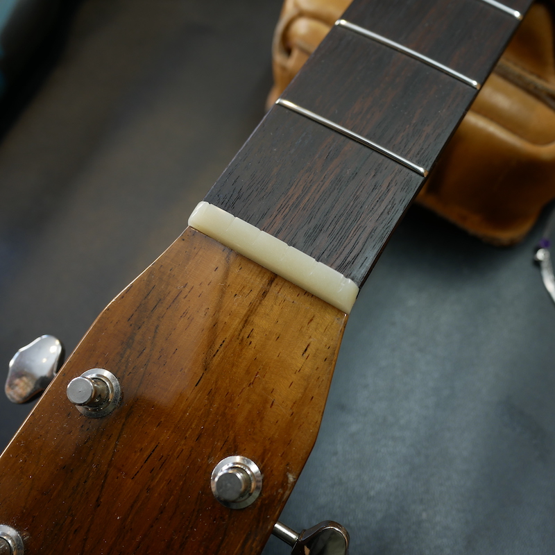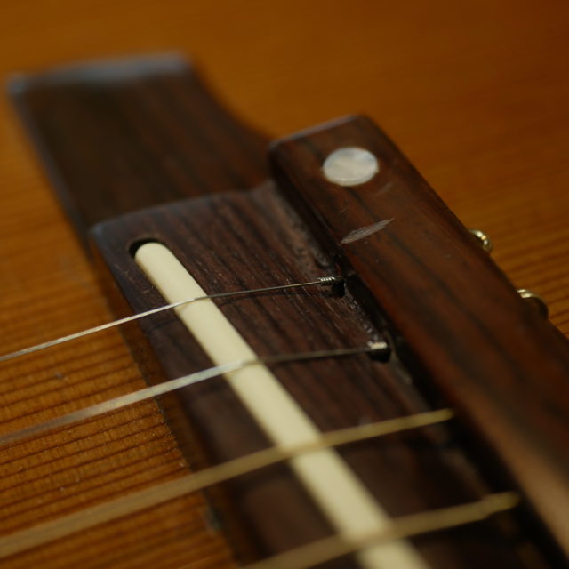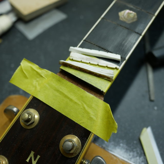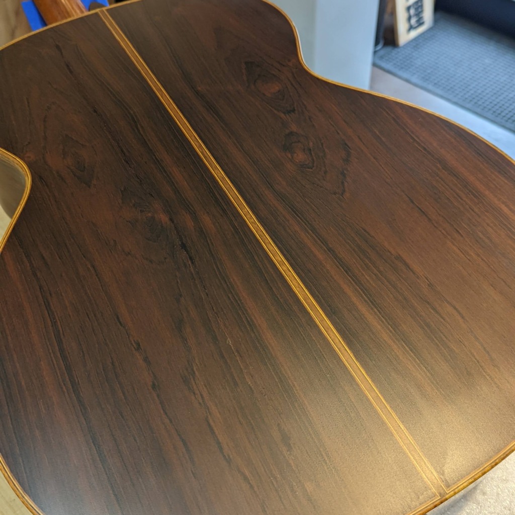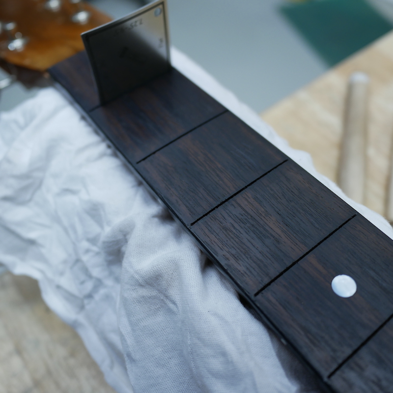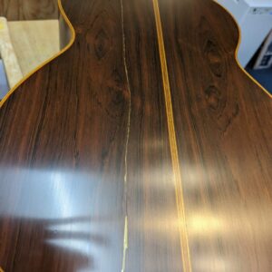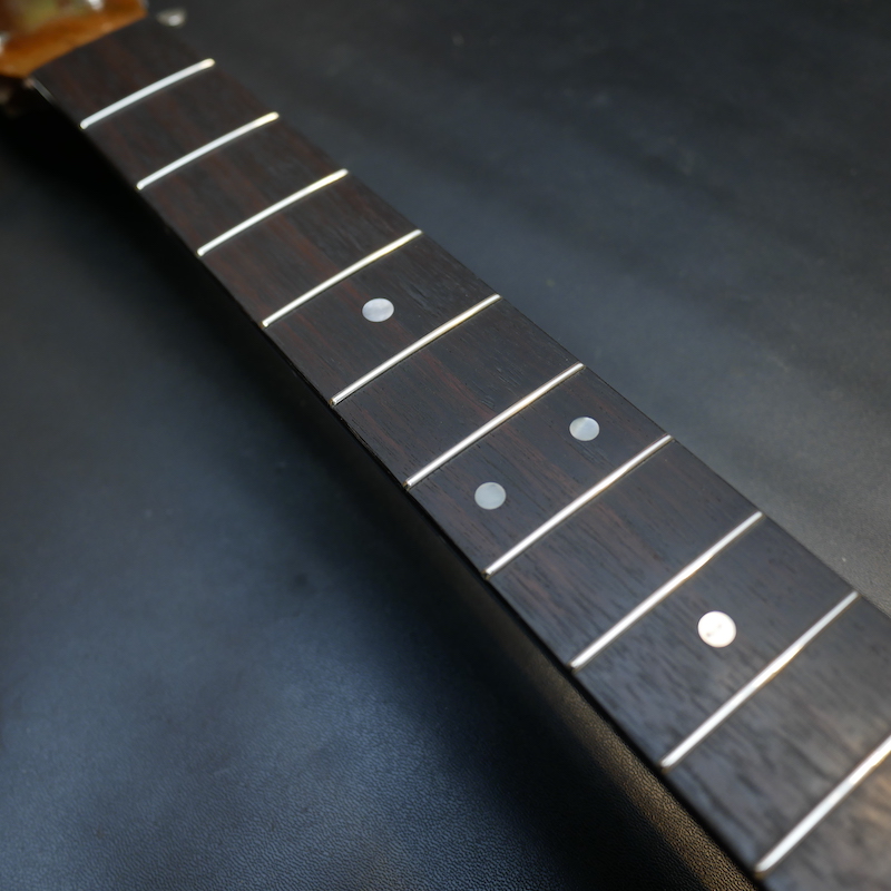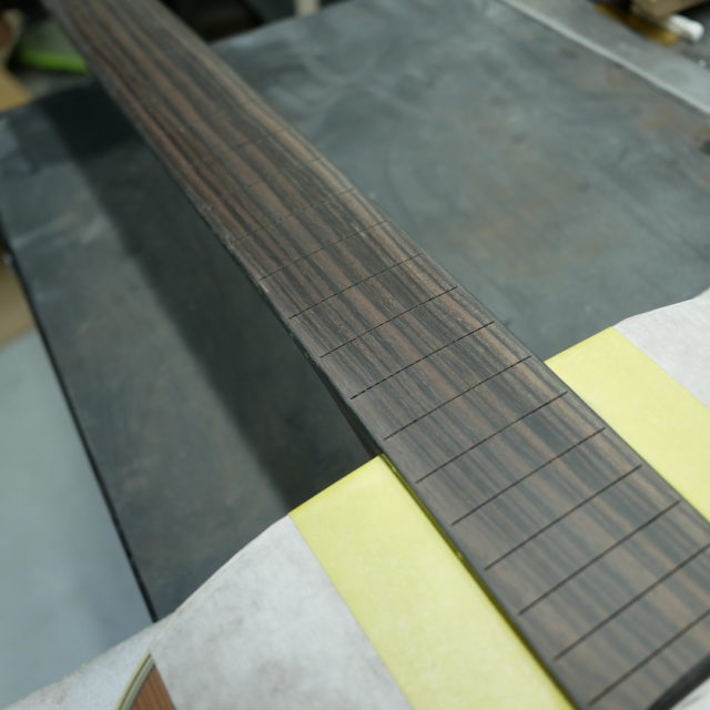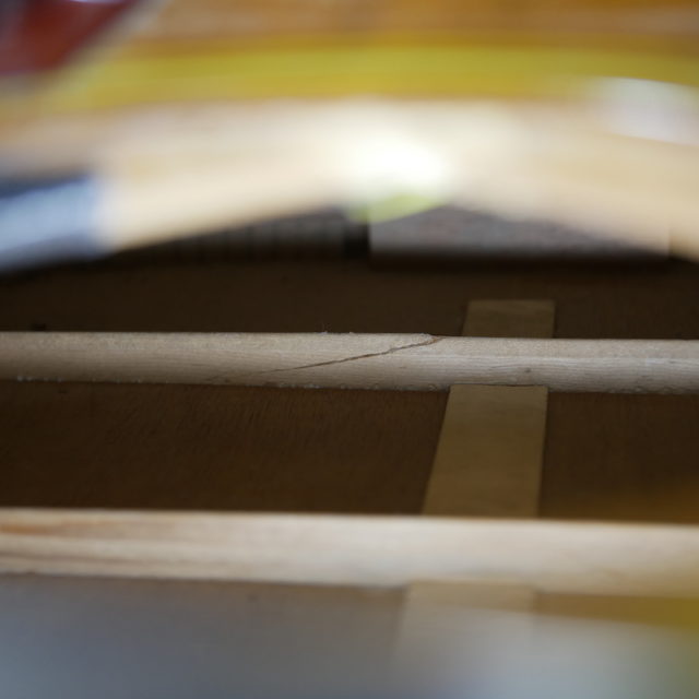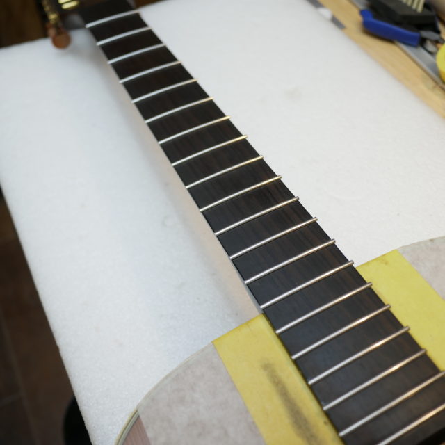 元々ついていたピックガードは、反って剥がれてしまったそうで、今貼ってるものも別で製作したもです。