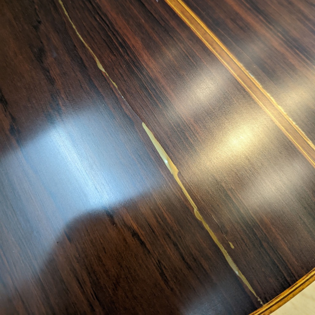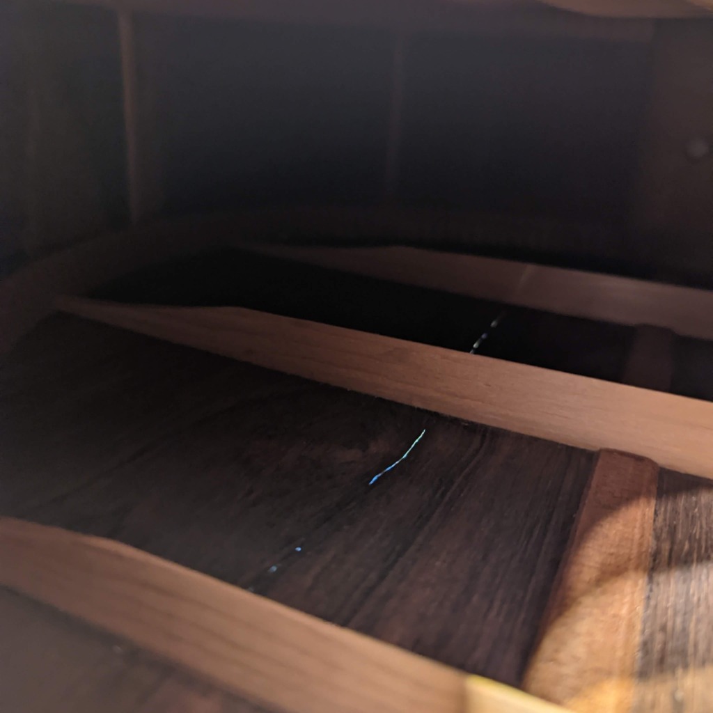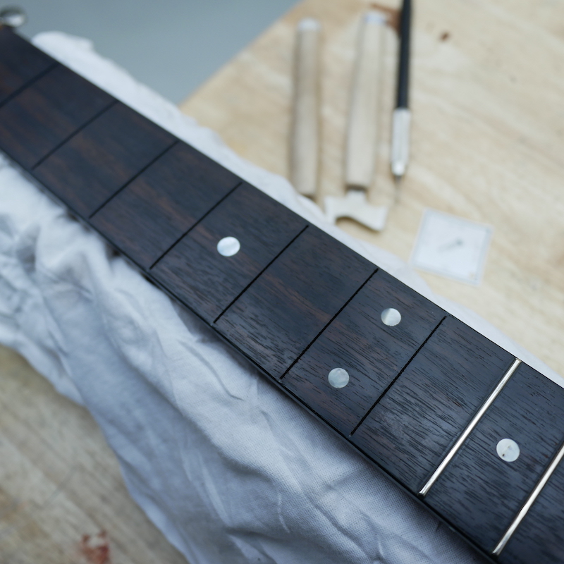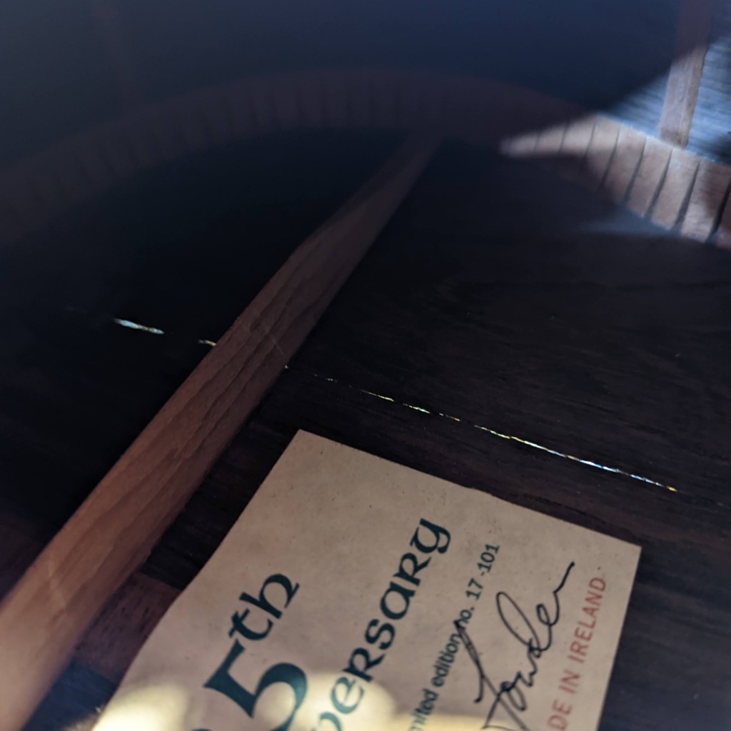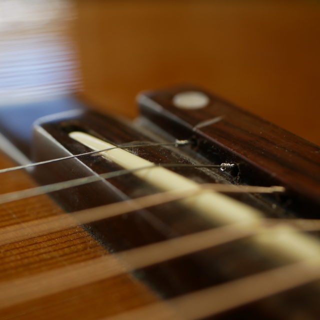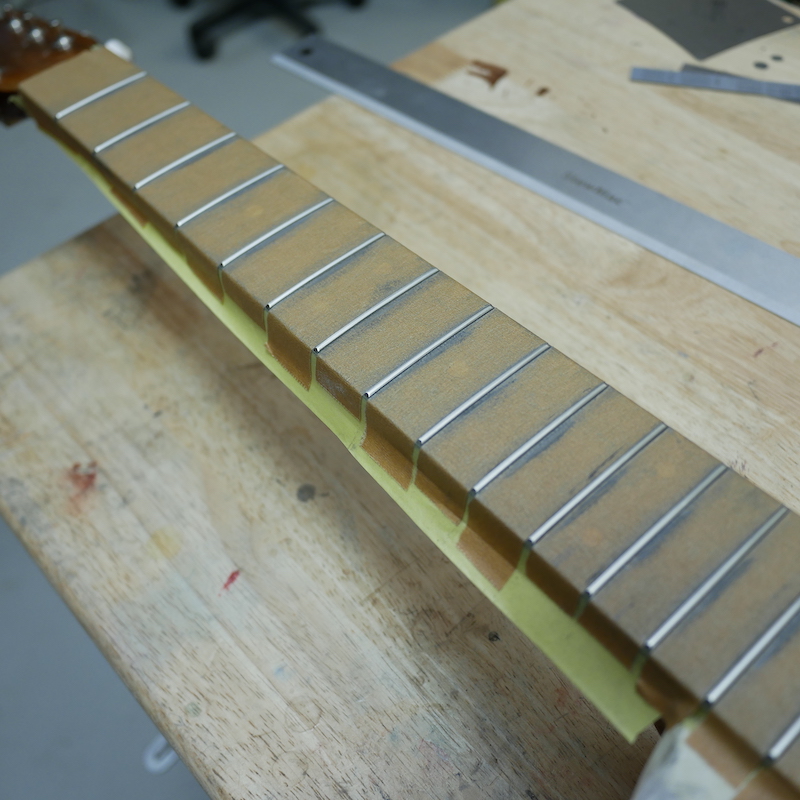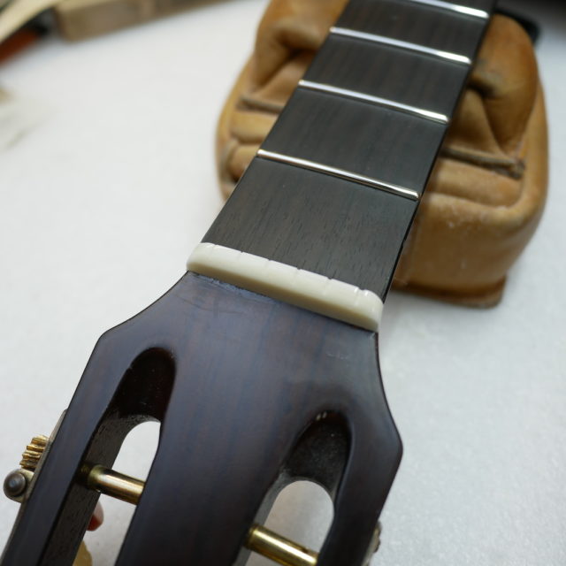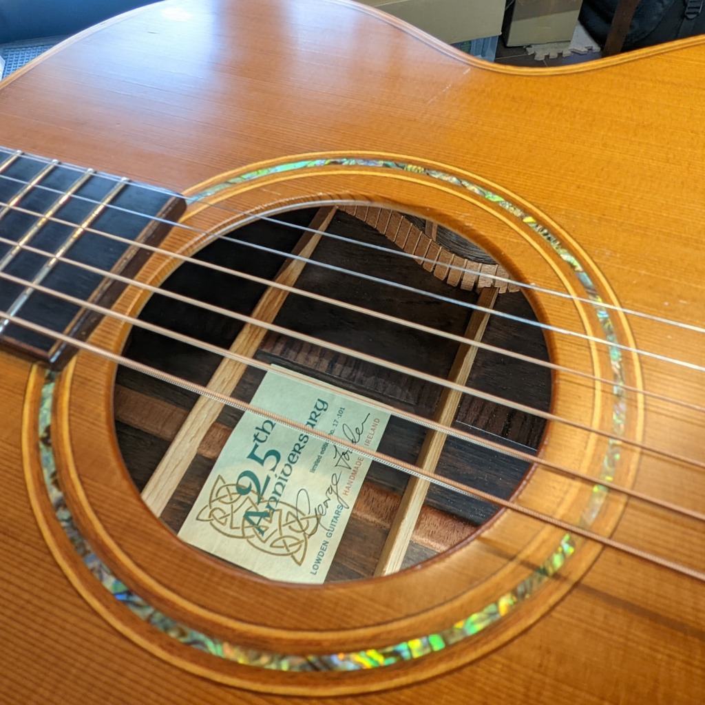 元々ついていたピックガードは、反って剥がれてしまったそうで、今貼ってるものも別で製作したもです。