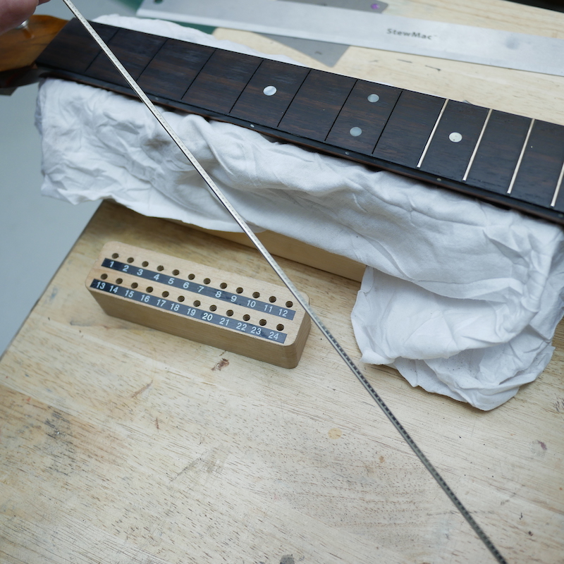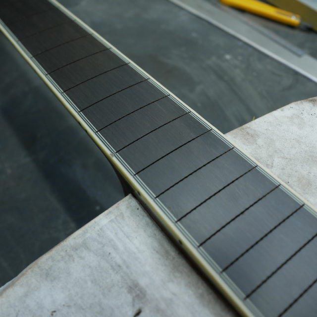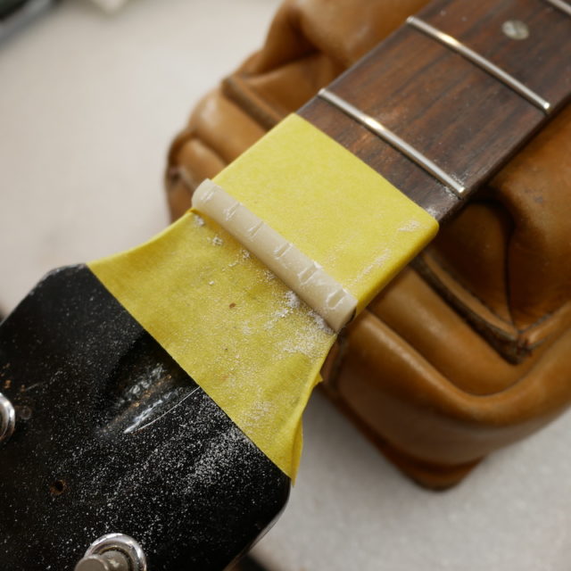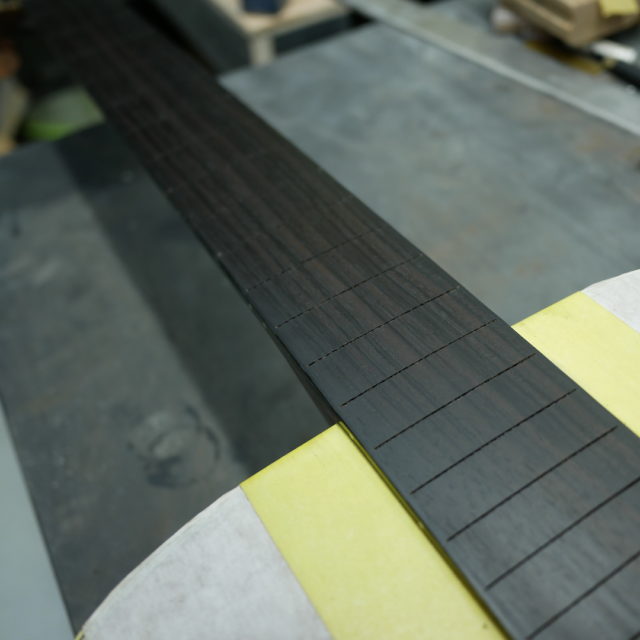 剥がしたピックガードから採寸して、新しいものを切り出します。