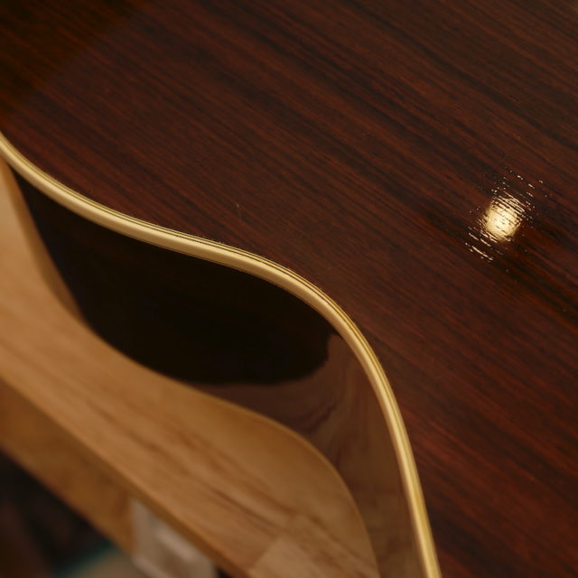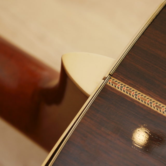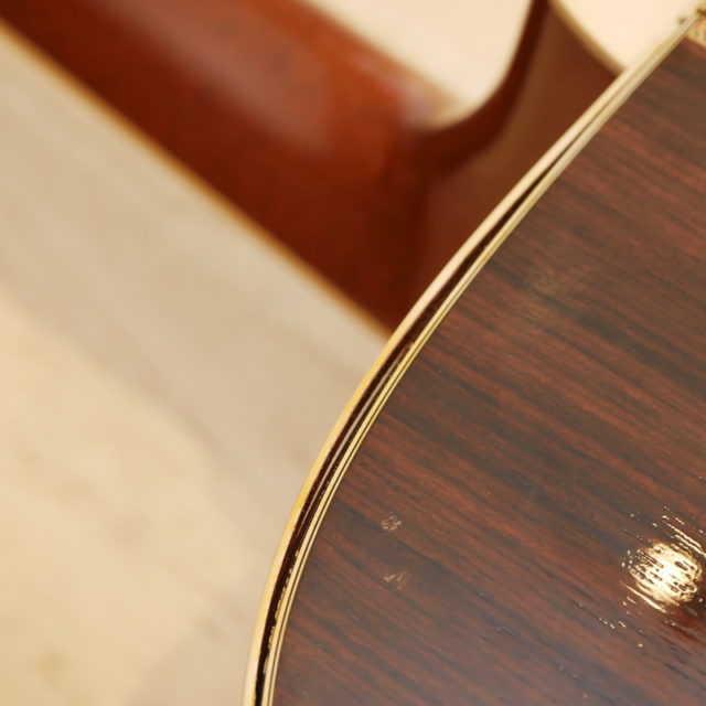 それでもナイロン弦なら剥がれる事はなかったかもしれませんが、この個体はボディがトップに向かって反ってしまっていたので、その合わせ技で剥がれてしまったというとでしょう。