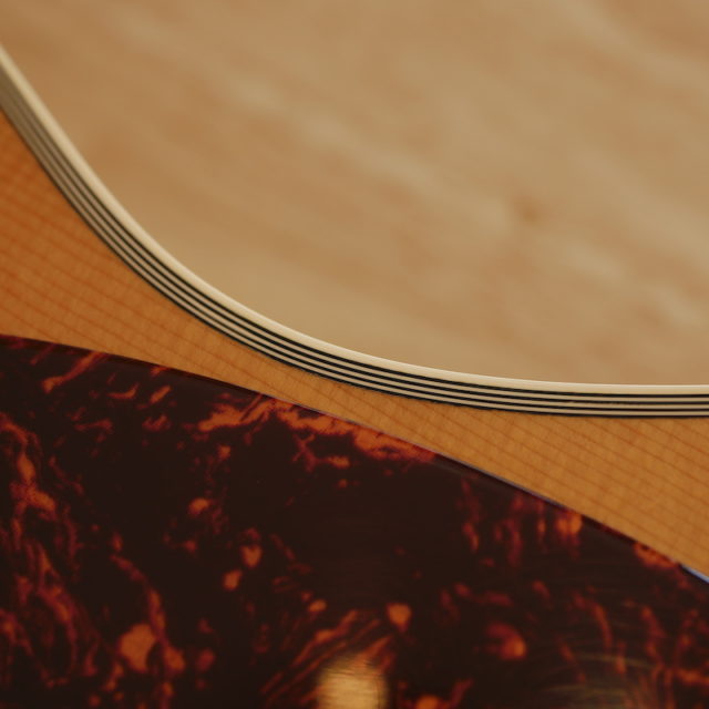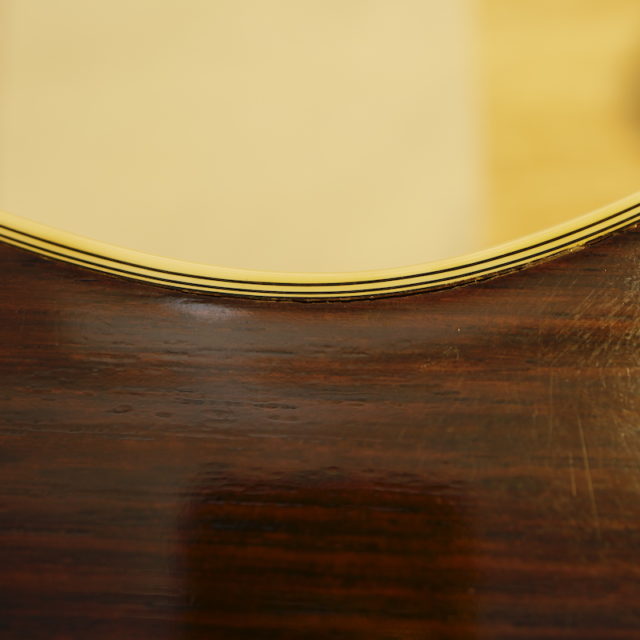 ブリッジ裏を見ると塗装と一緒に剥がれている事がわかります。トップコートの上からブリッジを接着している様です。