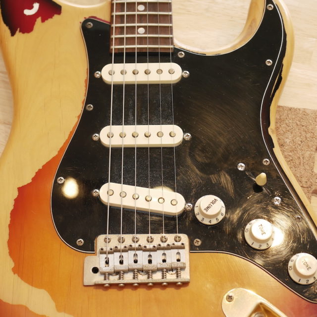 最終的にパーツを組み込み、ピックガードを取り付けると…