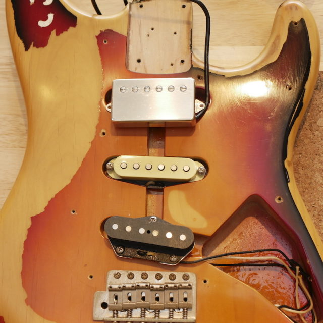 ハムバッカーを組み込むと重量はほぼトントンで、取り回しも違和感のない仕上がりです。