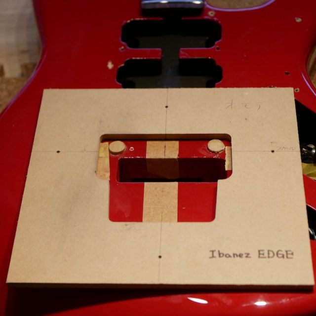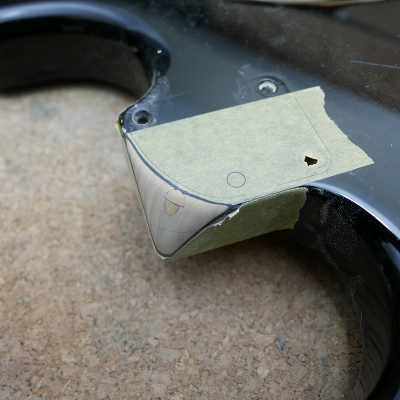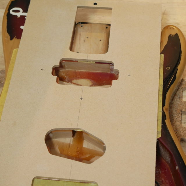 まずは既存のピックガードを拡張し、フロントにハムバッカーが収まるように開口を追加。