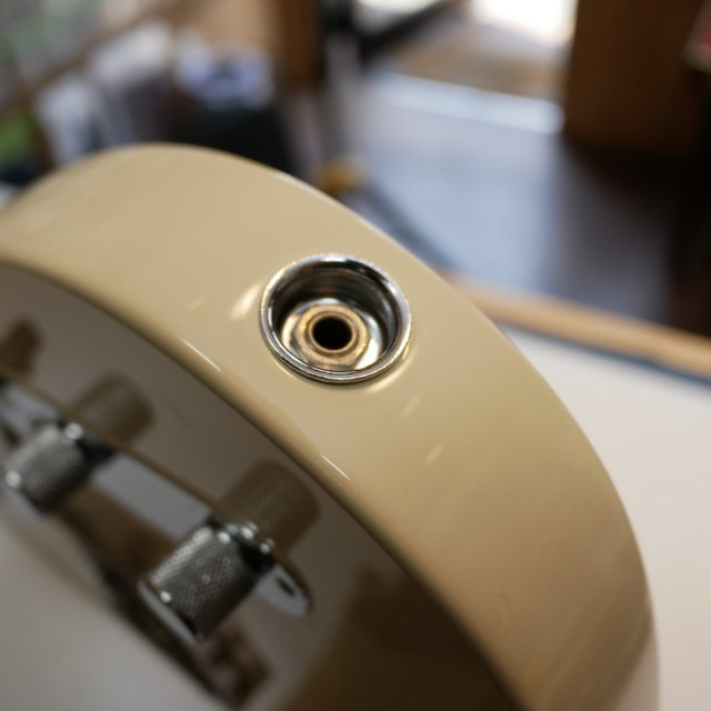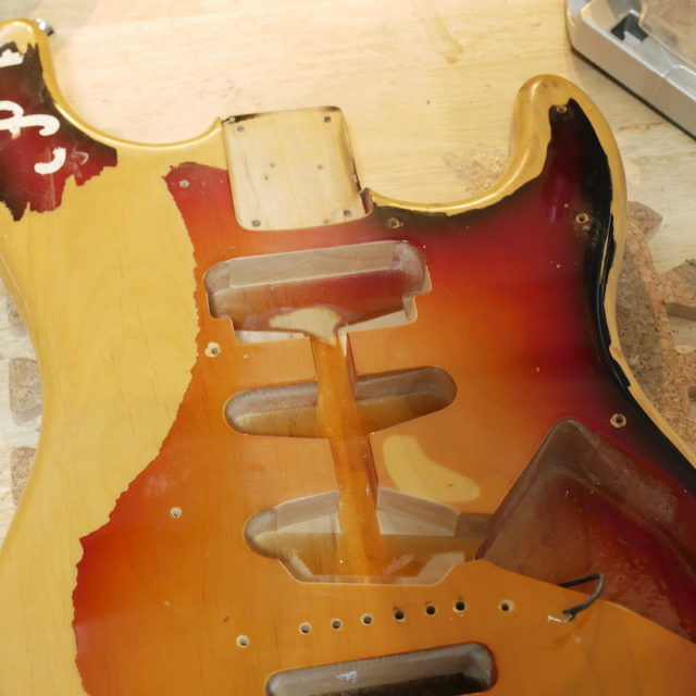 塗装をいったん剥がし、新しいフレットを打ち直した後、半つや消し塗装で再仕上げ。