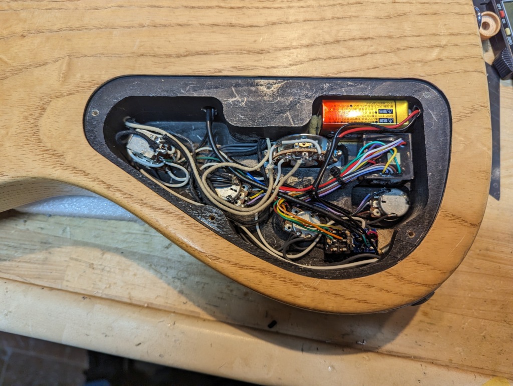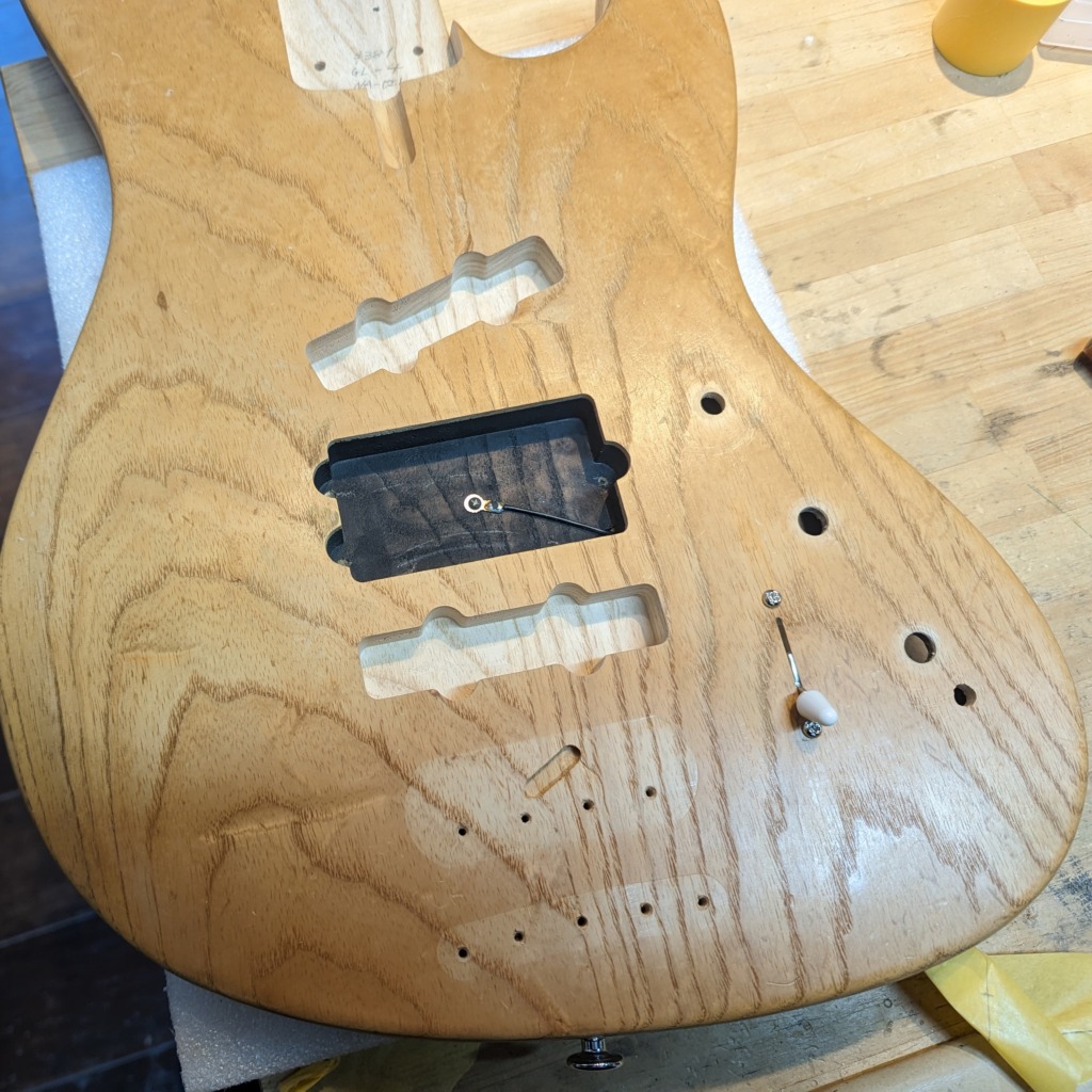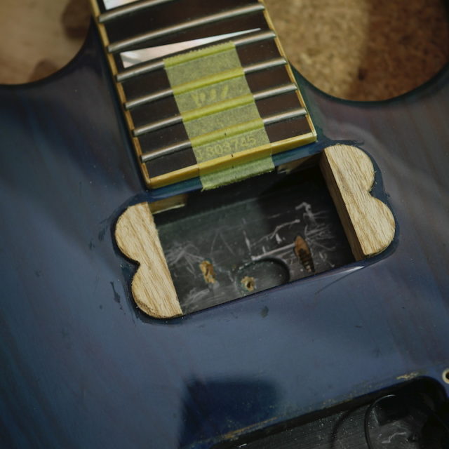 フレット交換とナット新製作、さらにフロントにハムバッカーを増設し、スマグラー加工まで行いました。