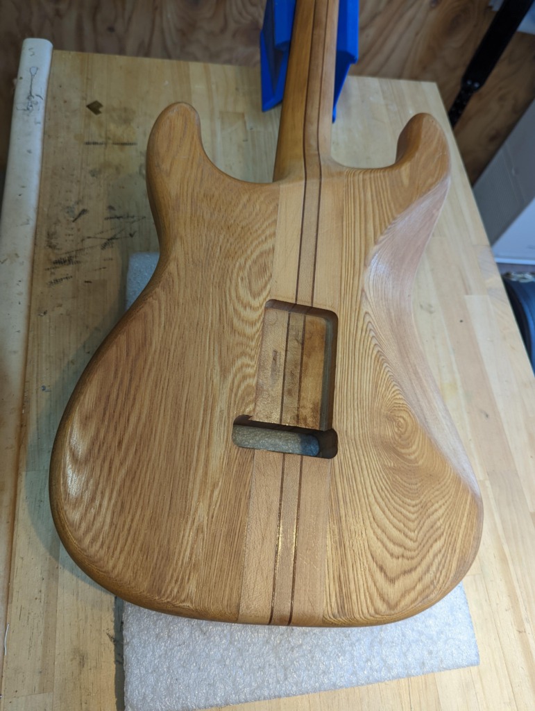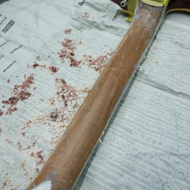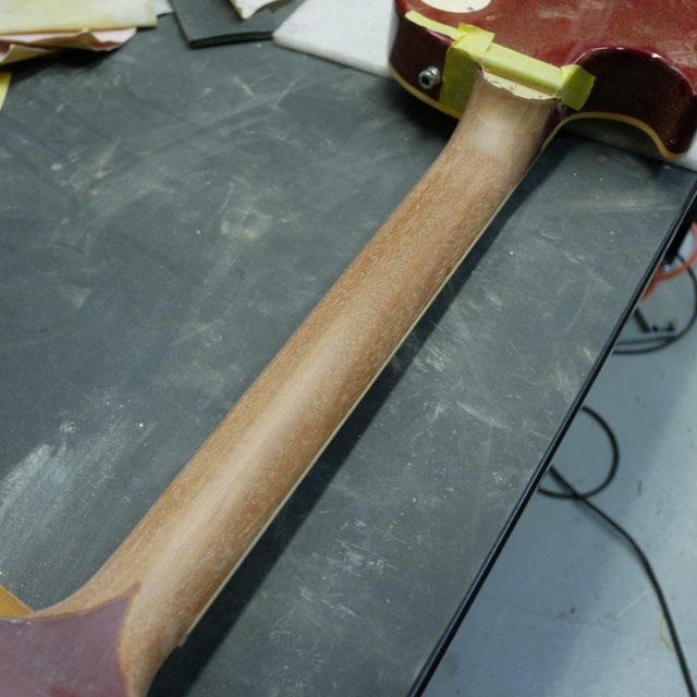 ネックは何度も点灯を確認して埋め木を接着し、塗装作業へ。