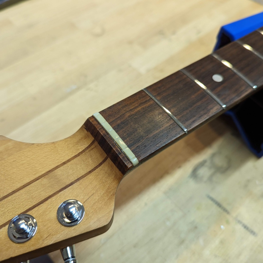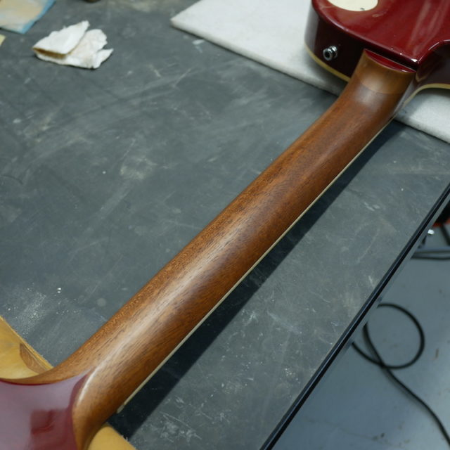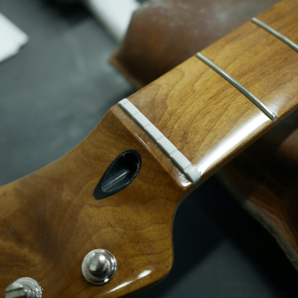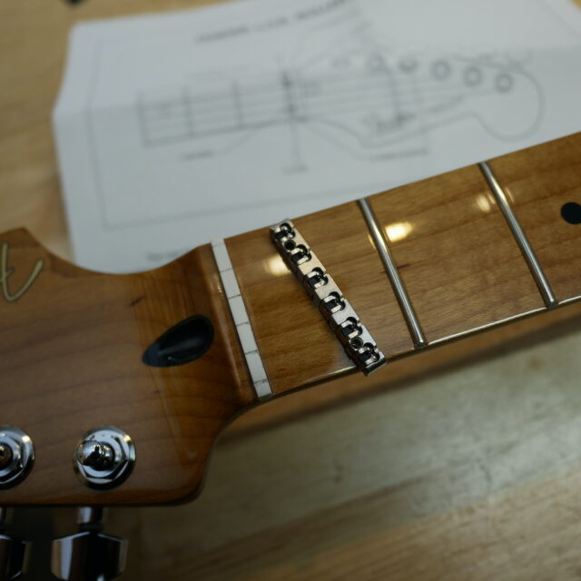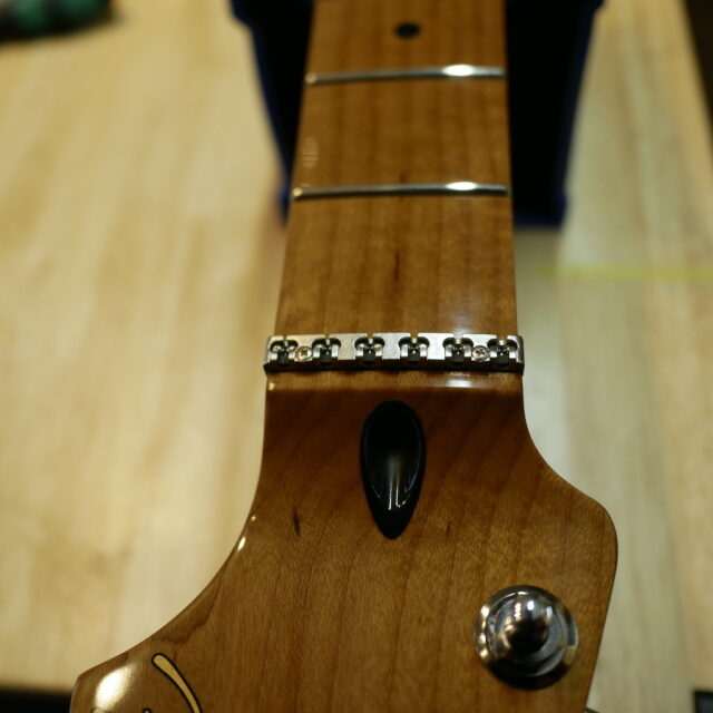 フレットすり合わせ、ナット溝加工を行いパーツを組み込み。