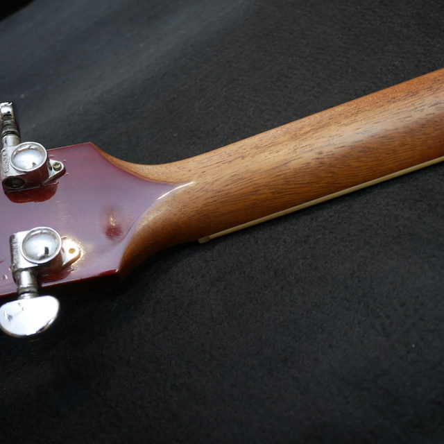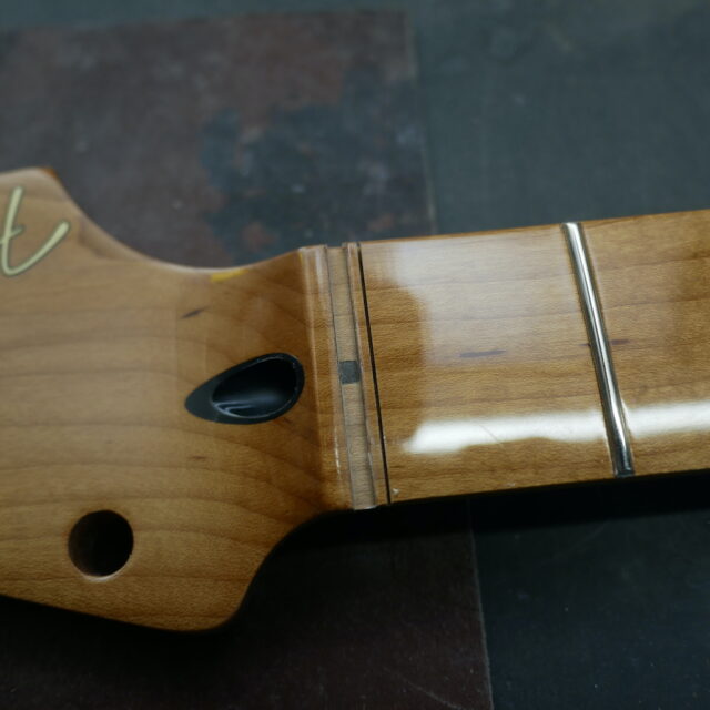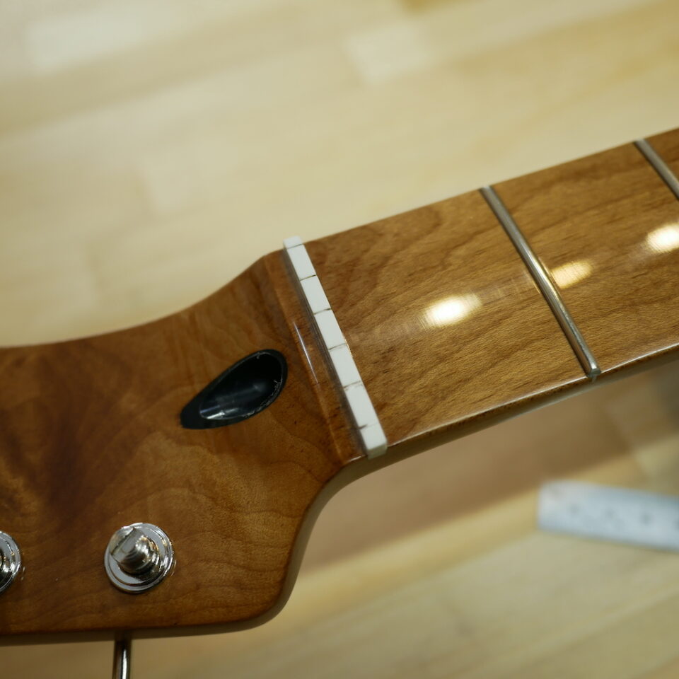以前購入直後にもネックだけお預かりして、指板のドットを黒からアヴァロン貝に入れ替えました。