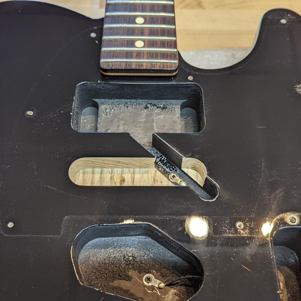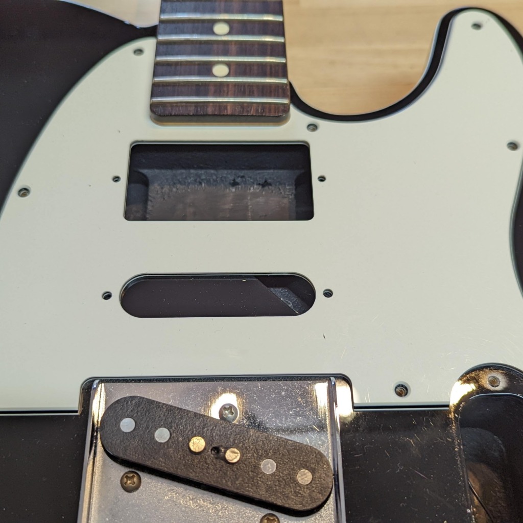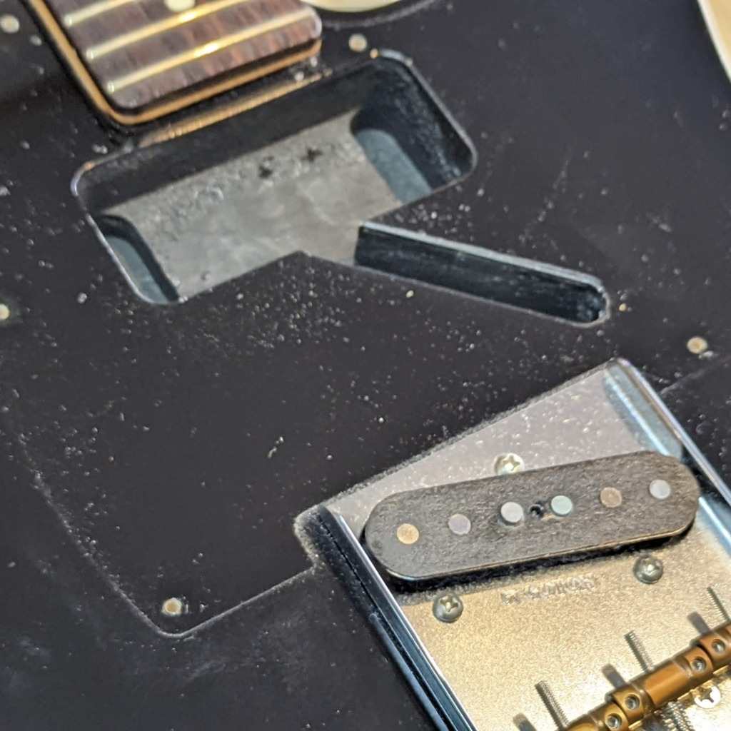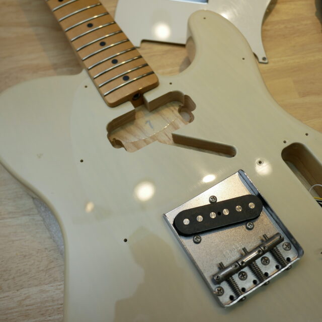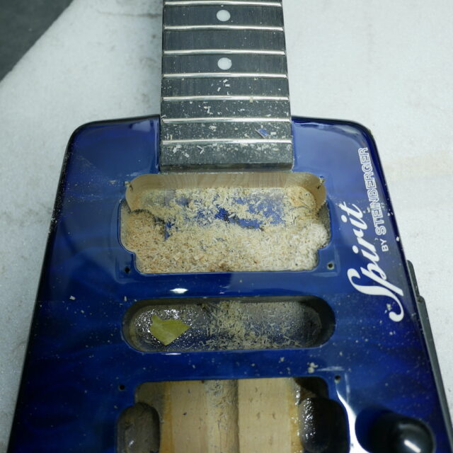 こういう加工は寸法組み込みがしっかりしているジャパン製のギターだと非常に楽。