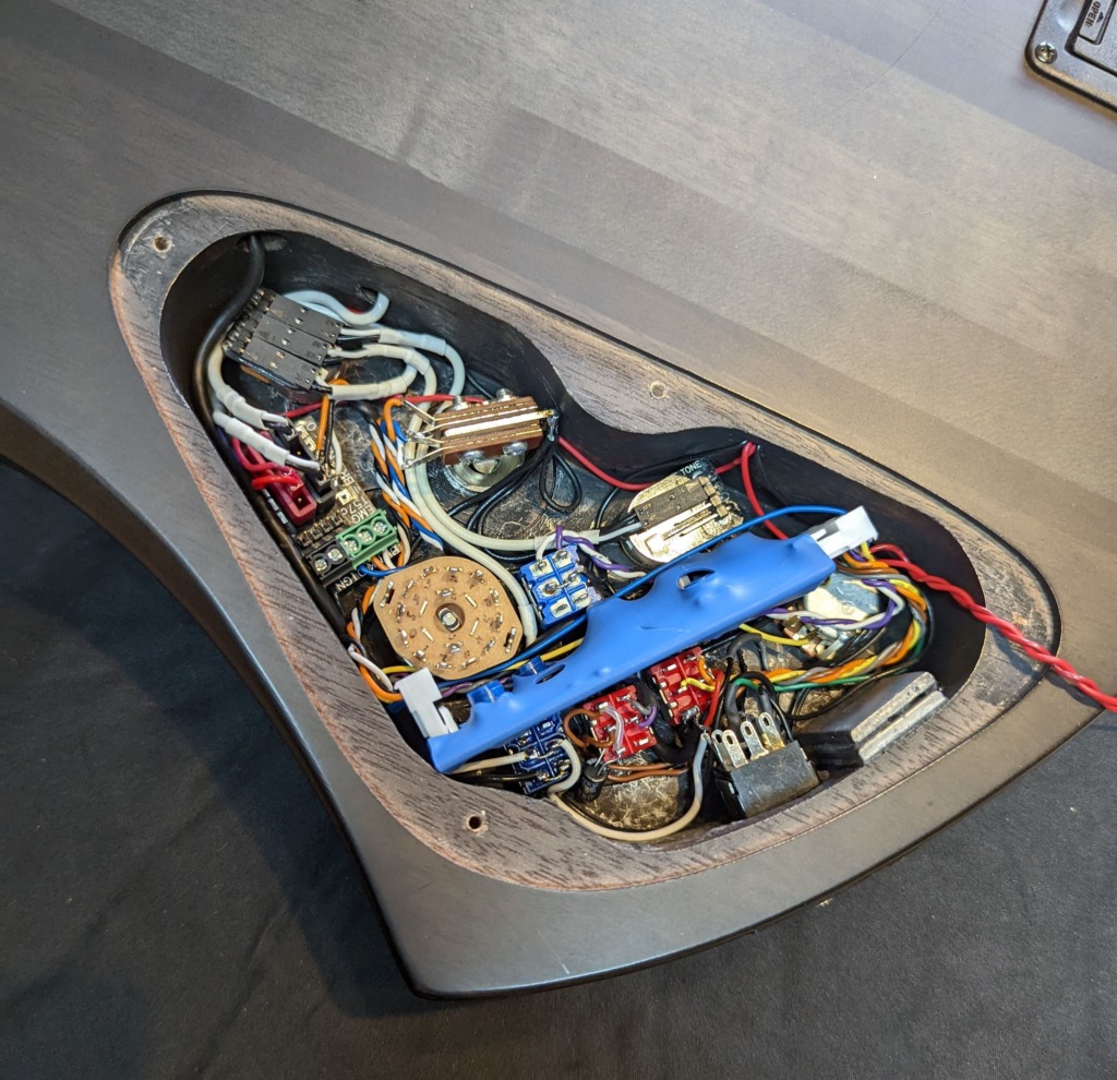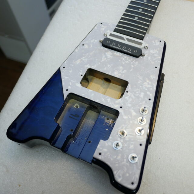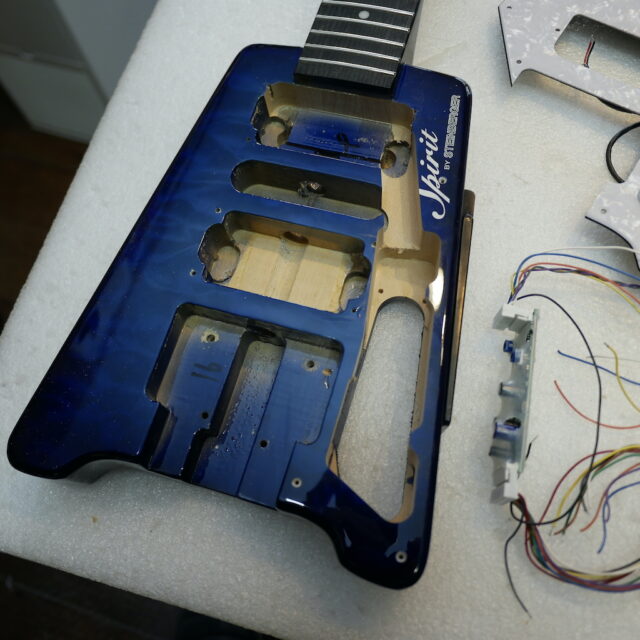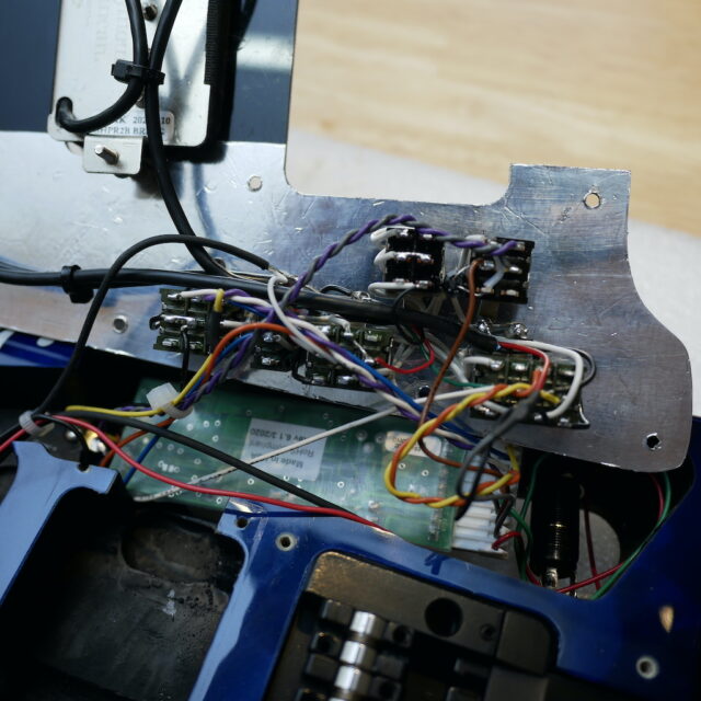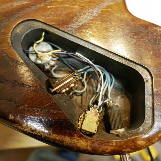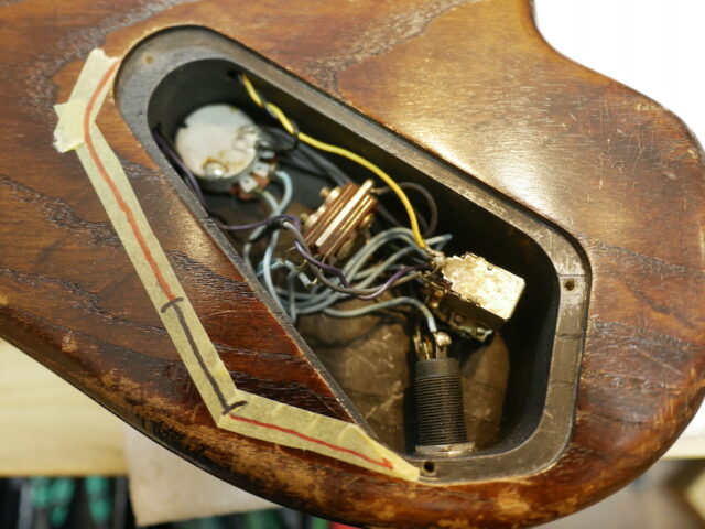 元々スイッチの多い機種で、ザグリも広く配線はしやすいギターです。