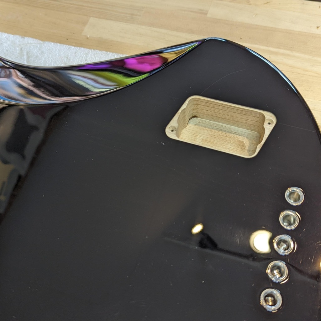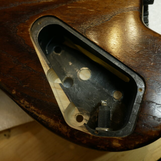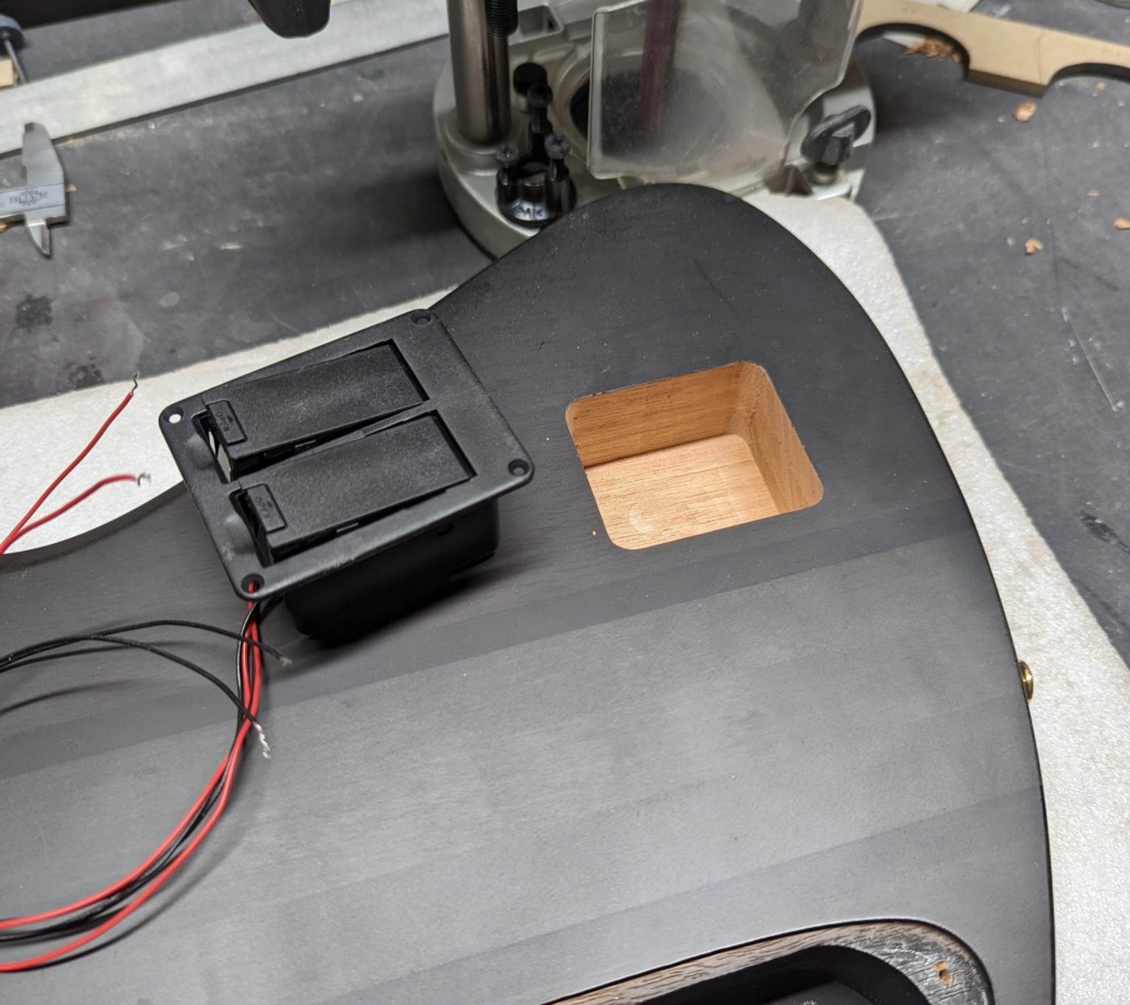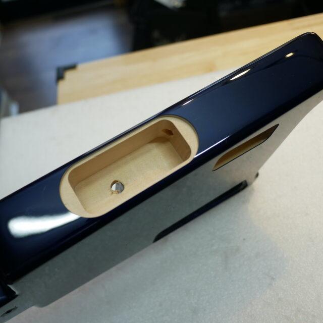 ネックポケットからの配線穴とLED専用にバッテリーボックスを増設しました。