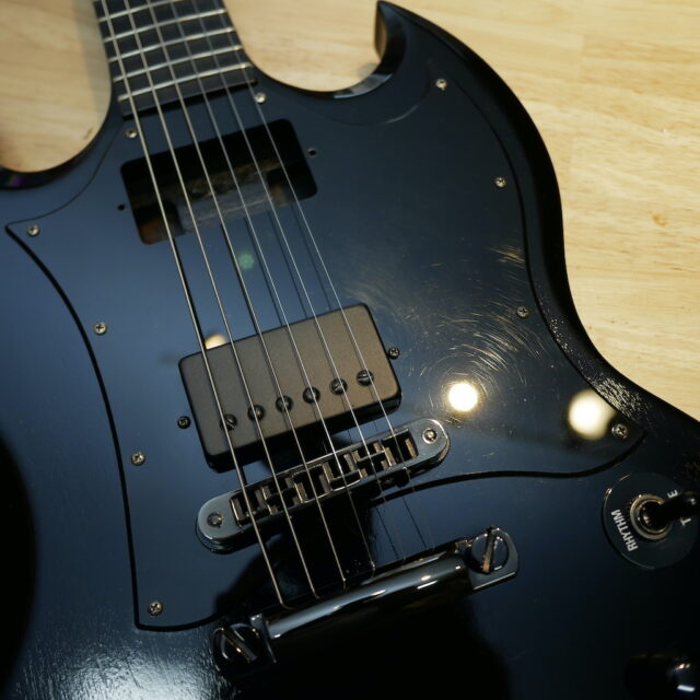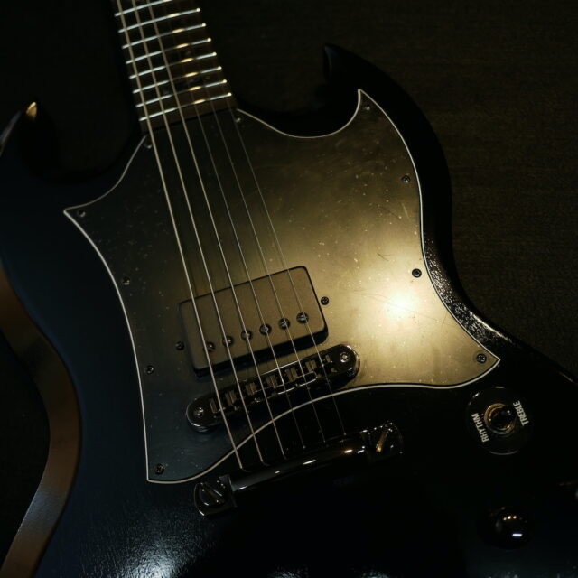 コントロールは3ピックアップのハムバッカーーOFFーシングルを切り替え。