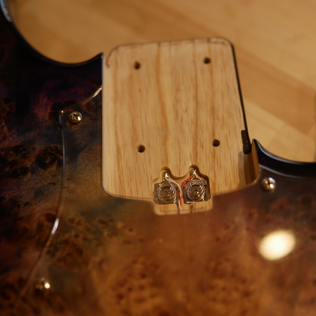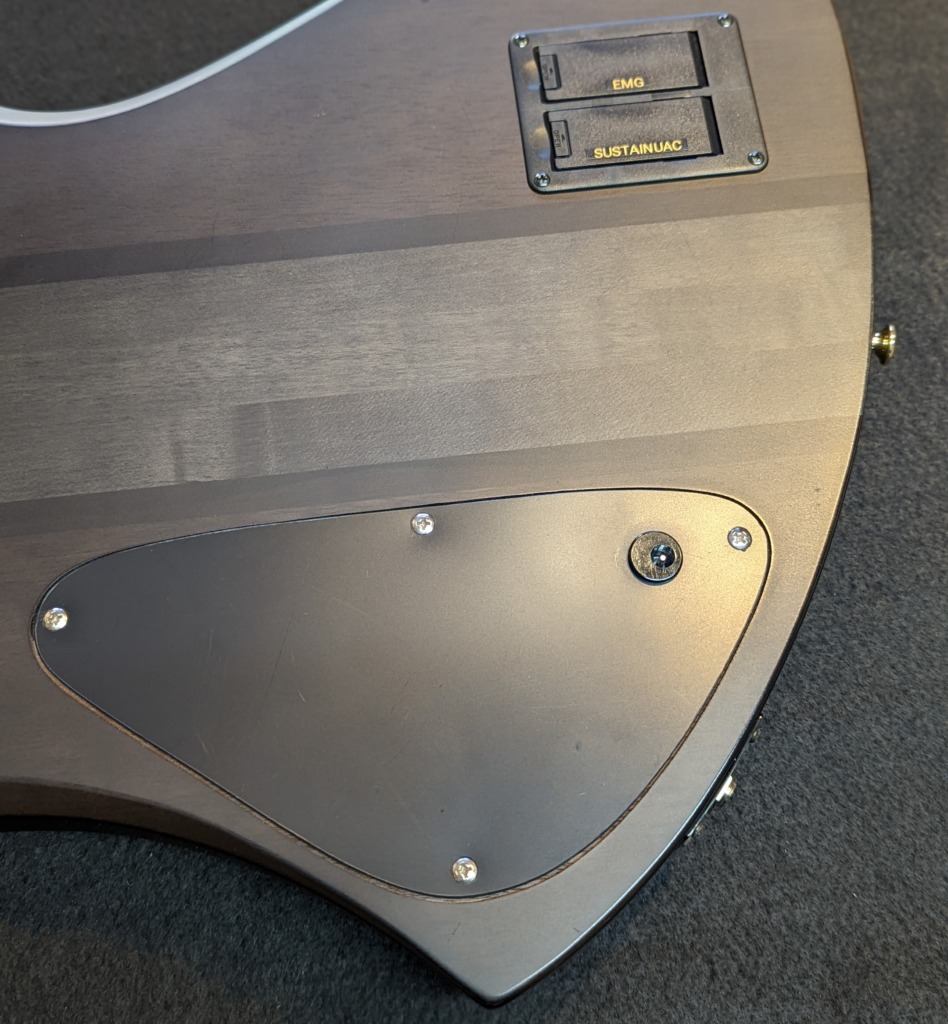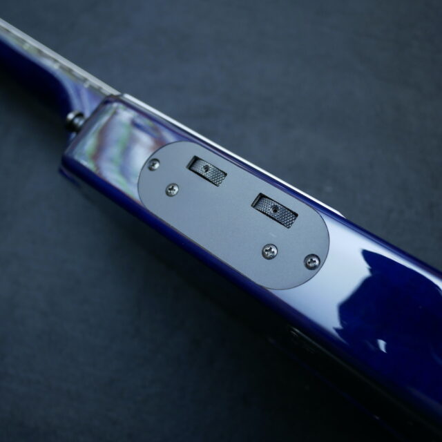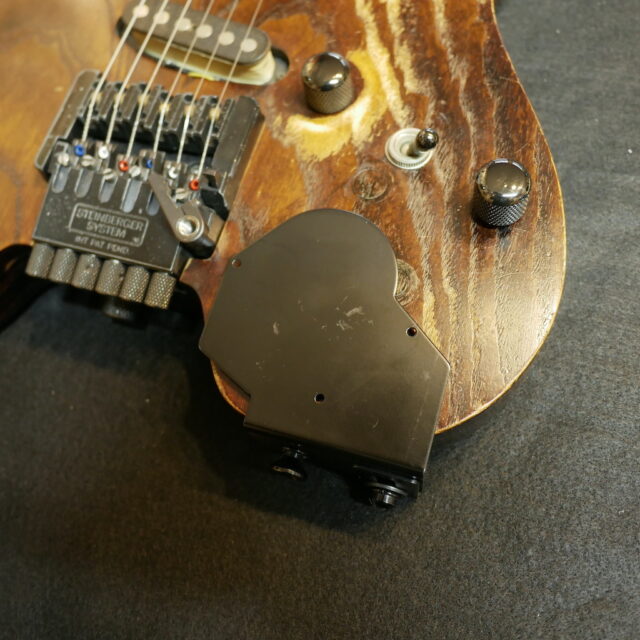 アクティブピックアップとサスティナーを搭載するため、ジャックにはスイッチ付きの特殊なステレオジャックを使用します。