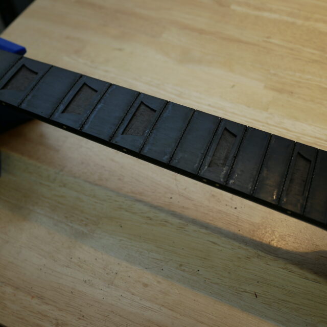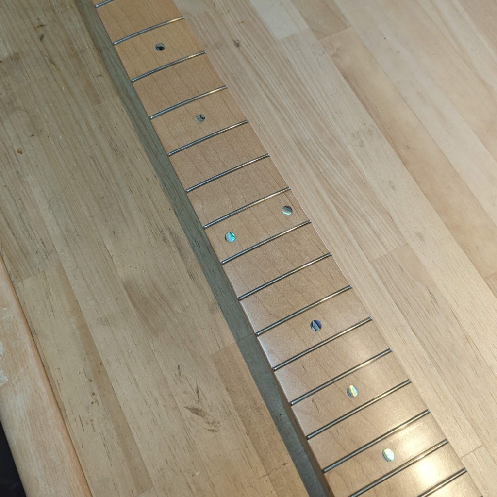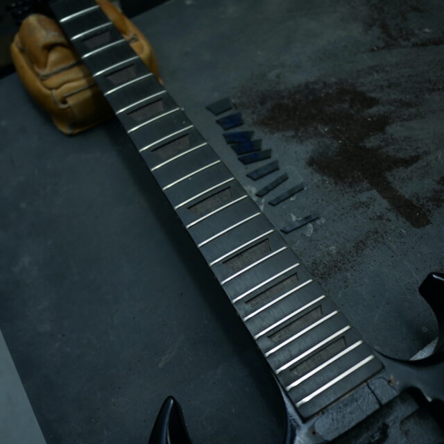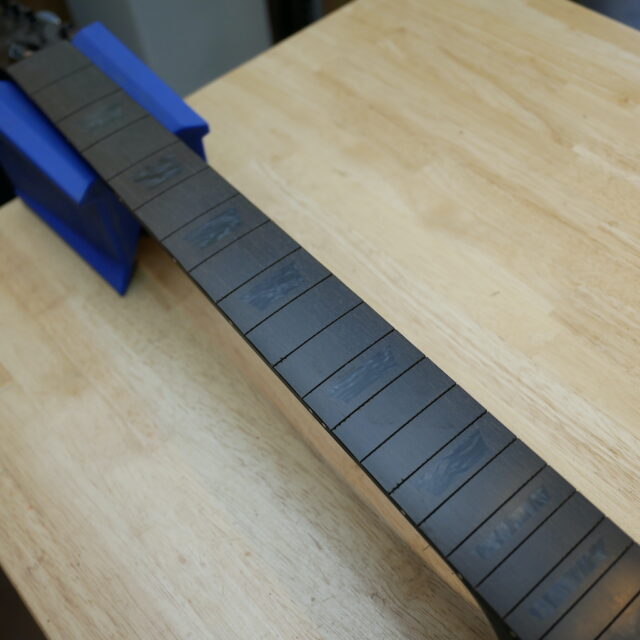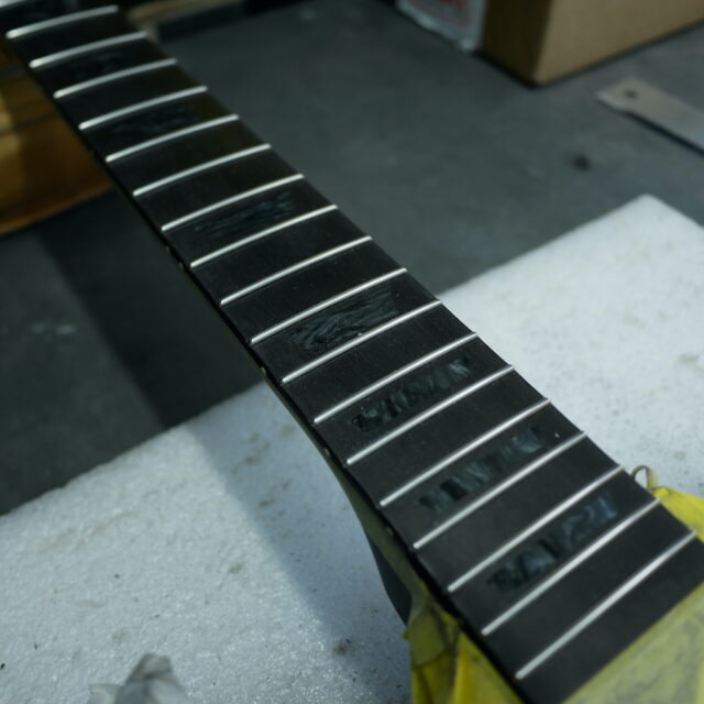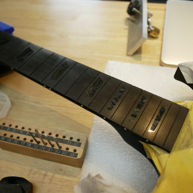 フレットを打ち込んで、サクサク仕上げに向けてすすめて参ります。