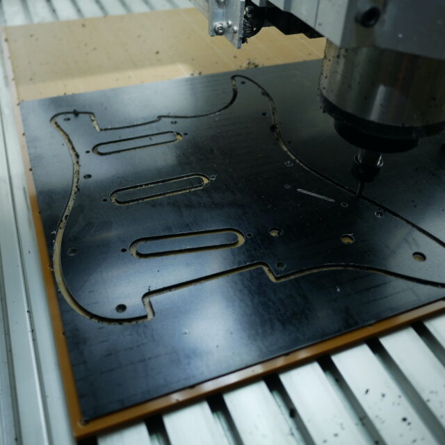 ピックガードもリア一発仕様で、黒3PLYで製作しました。