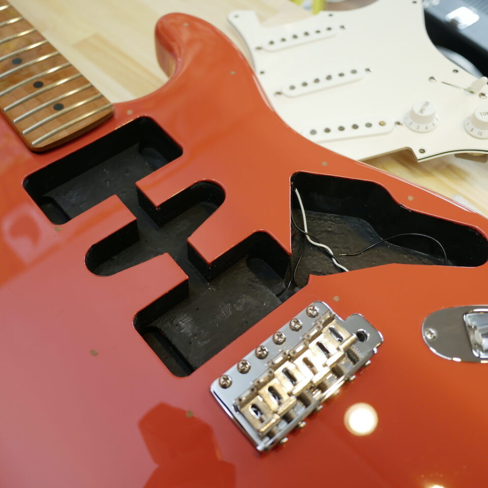 こちらにセンターピックアップの増設とフロントハムバッカーピックアップの交換作業です。
