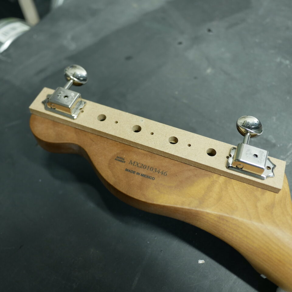 ペグはクルーソンタイプと取り付け。コンバージョンブッシュを使いました。
