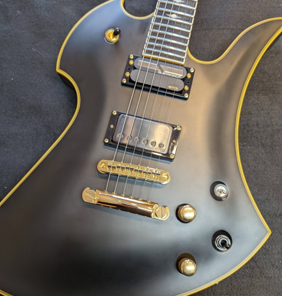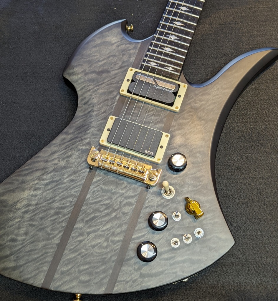 内容まで非常に似通っていて、B.C.Rich Mockingbird にサスティナーを組み込み、EMGピックアップを乗せるという・・・。