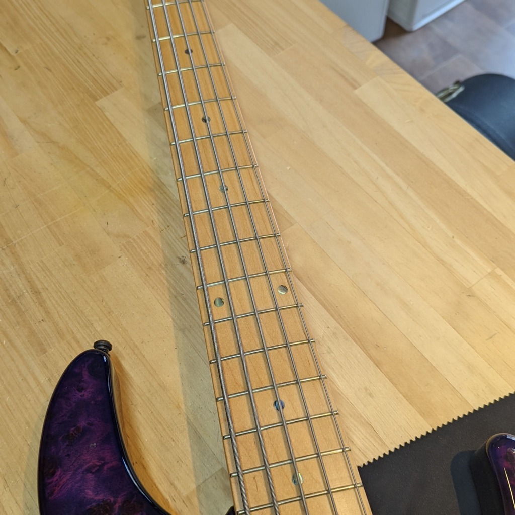 流石に5弦ベースだけあって、ネック幅が広くサイドボジションマークの配線穴は苦戦。