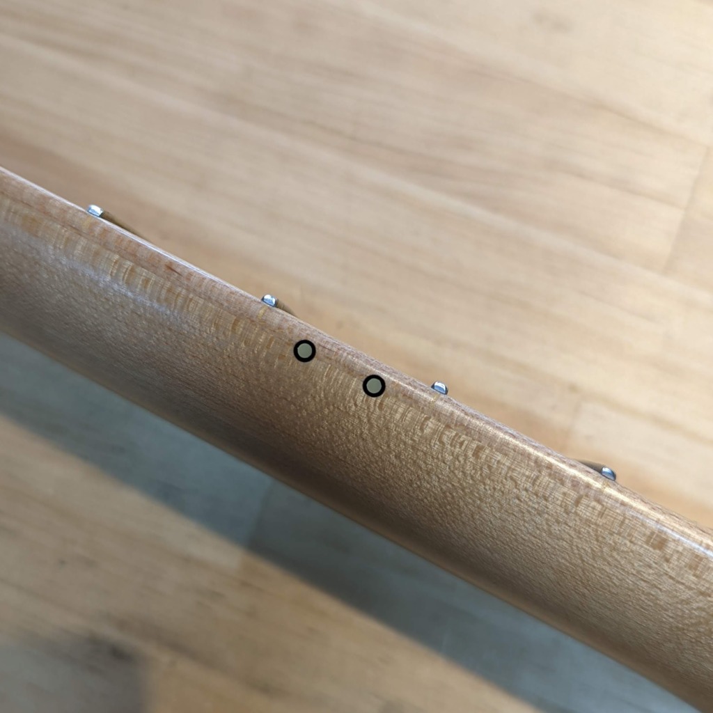 お客様にも確認して、1弦サイドから溝加工を行い配線後にメイプルで埋め木を行うことになりました。