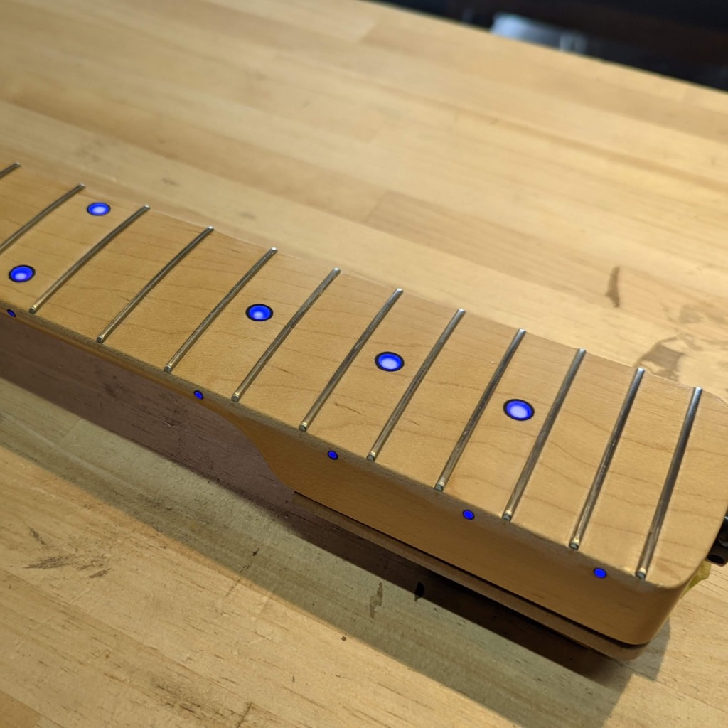 12フレットやトップドットのない21フレットは個別のLEDなので、サイドのLEDを別系統で仕込む配線もできそうですが・・・
