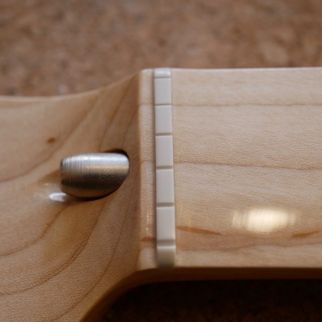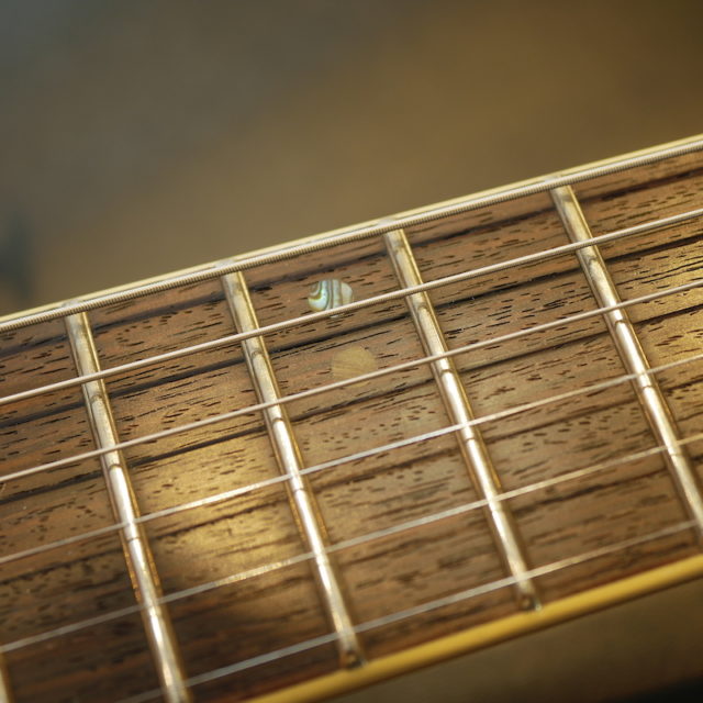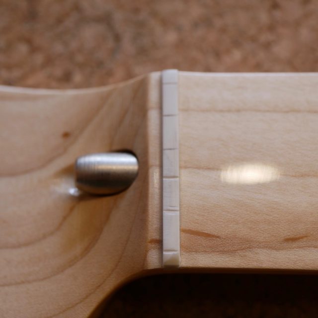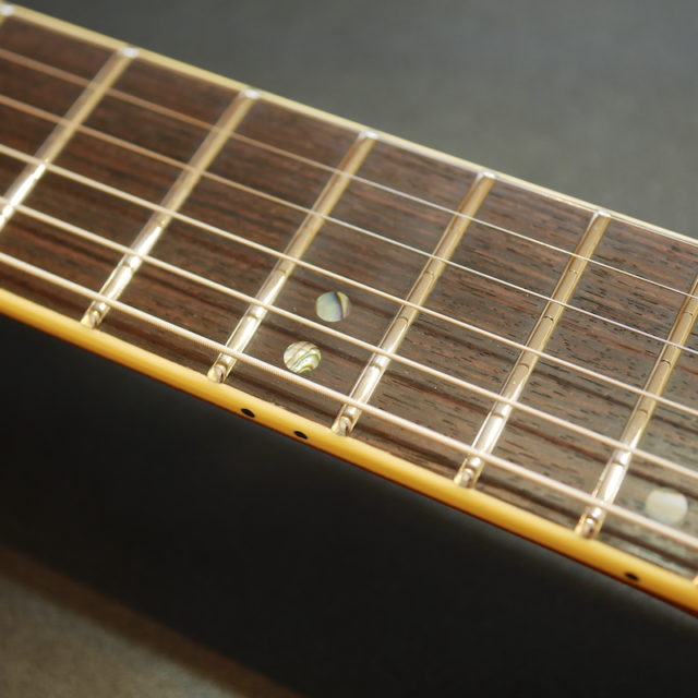ローズウッドの色が結構抜けてて、中は紫っぽいけど外は茶。あんまりなじまないかなと思ったのですが、削ると以外と馴染みました。サイドから見るとちょっと他より濃いのでわかりますが。