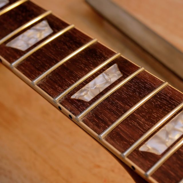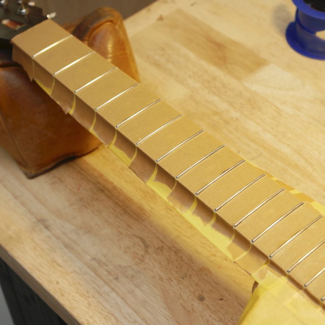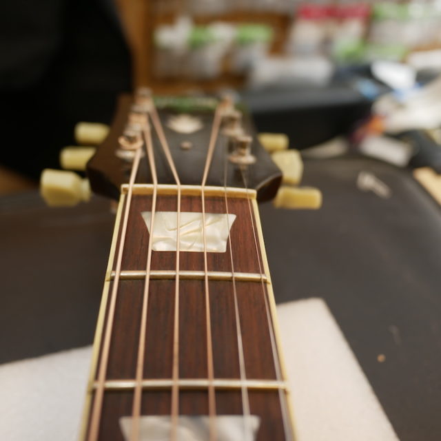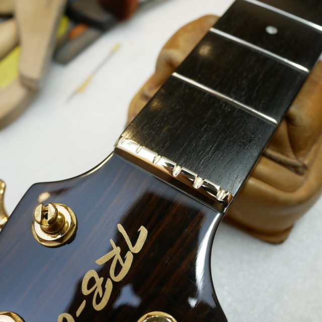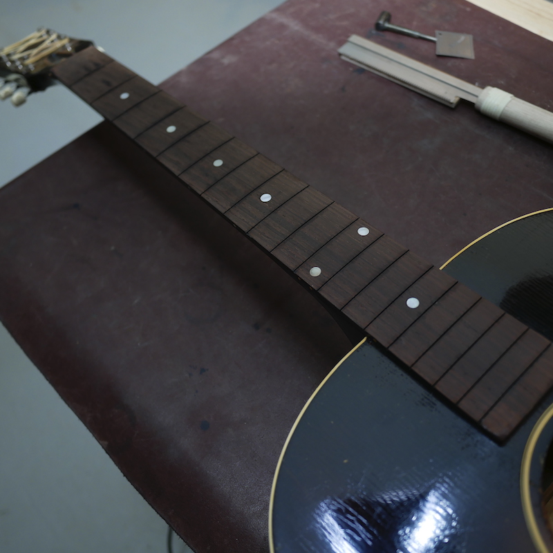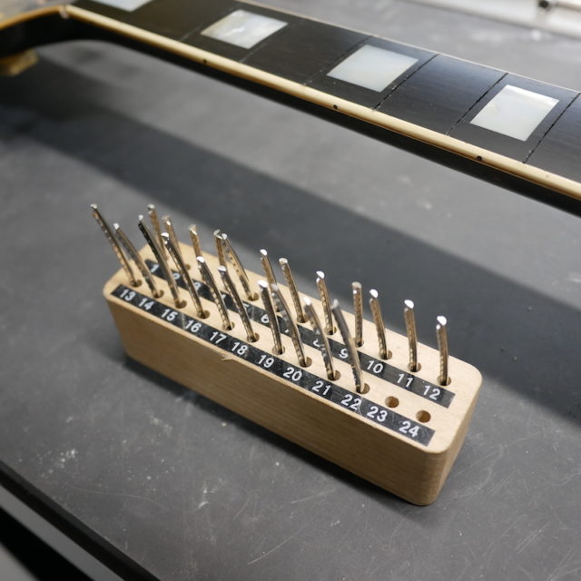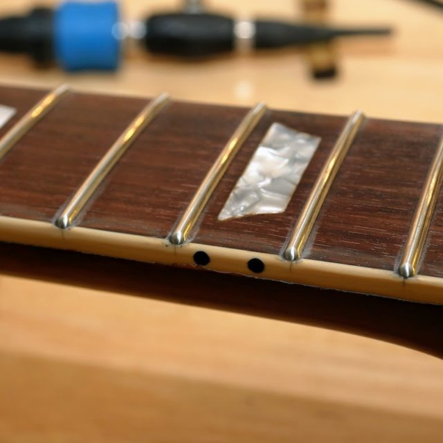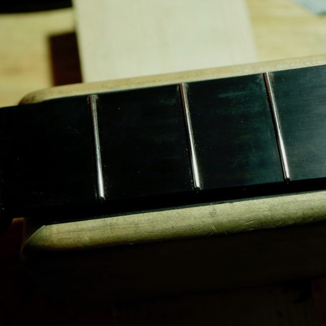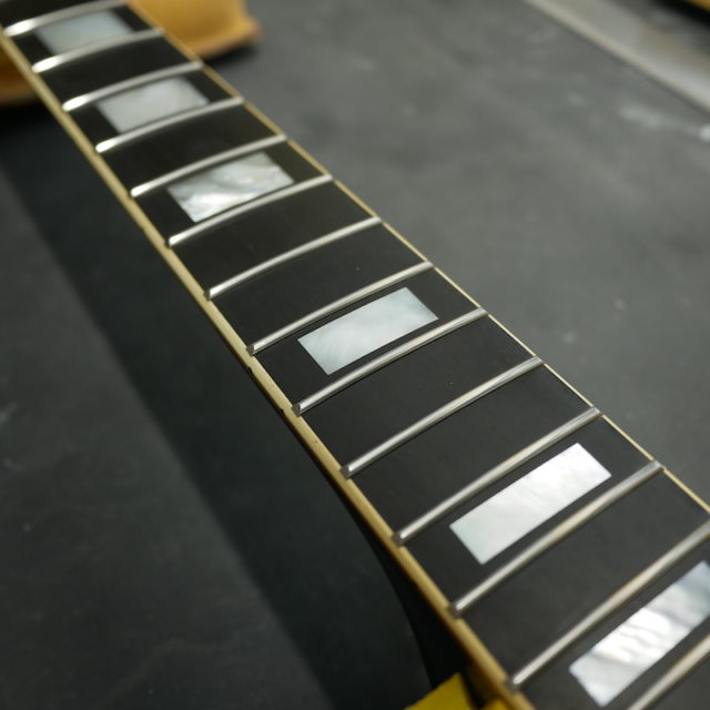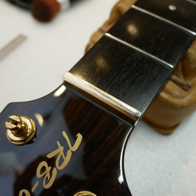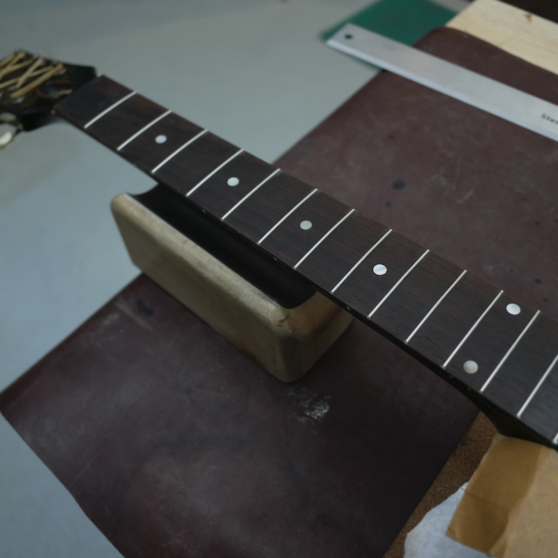 指板調整して、硬いジャンボフレットを切って曲げて打って、、、