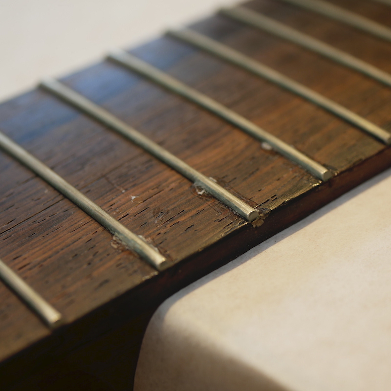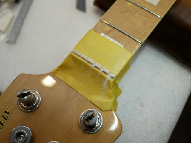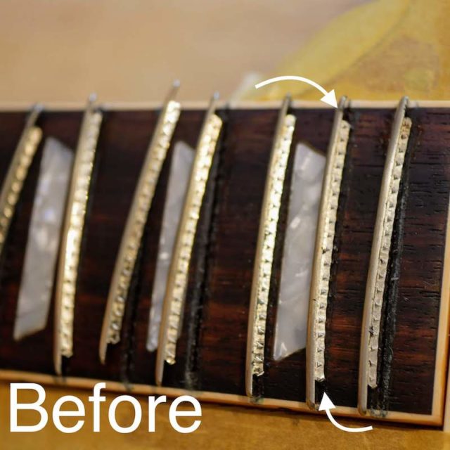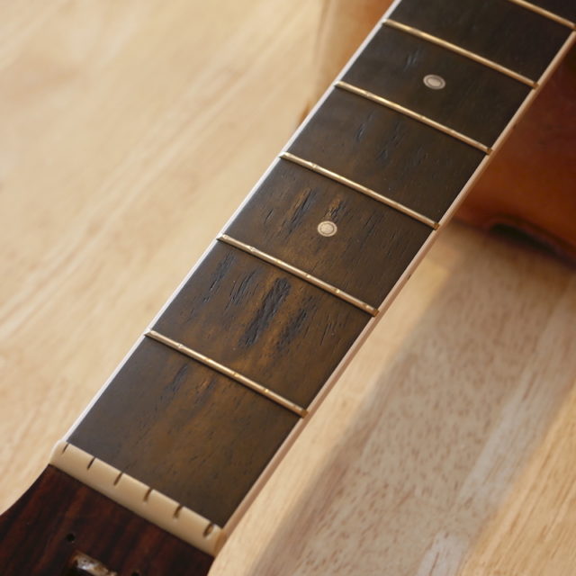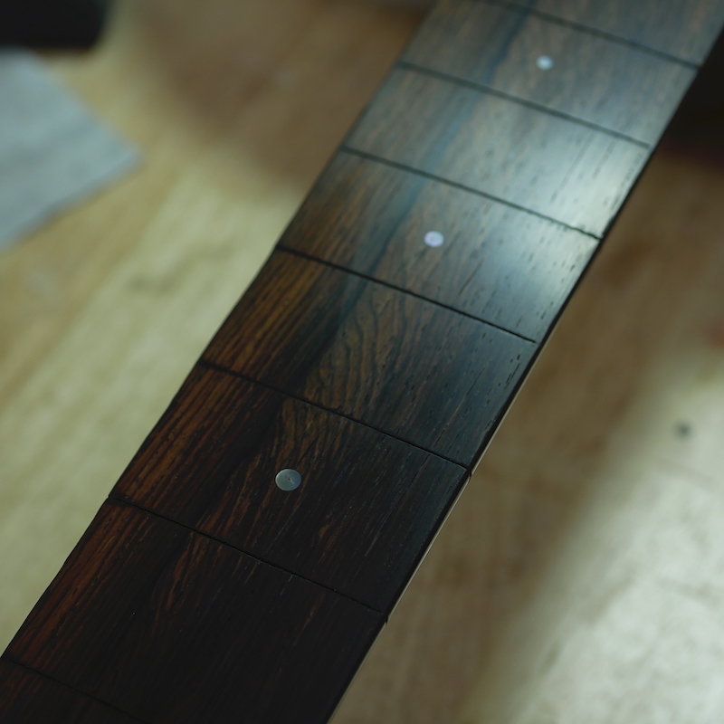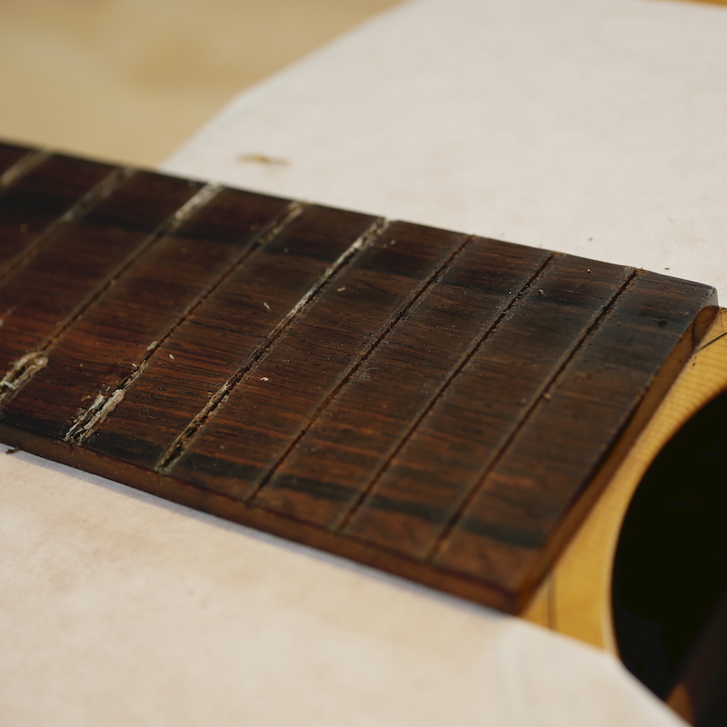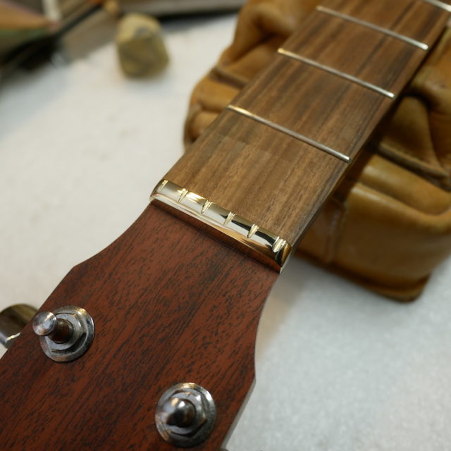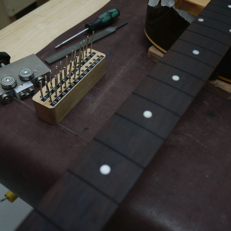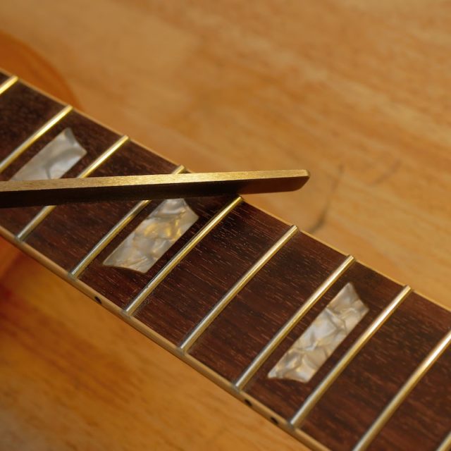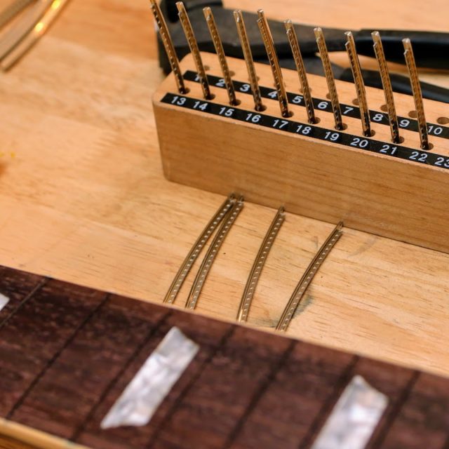 指板調整して、硬いジャンボフレットを切って曲げて打って、、、