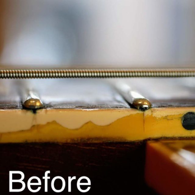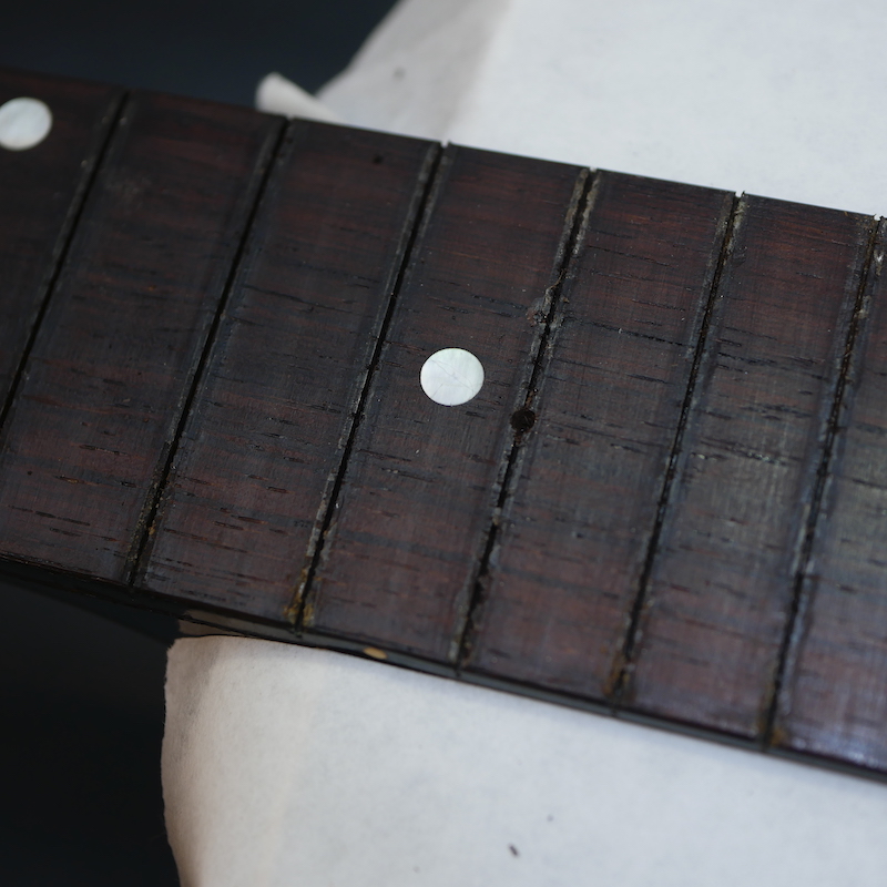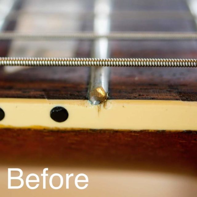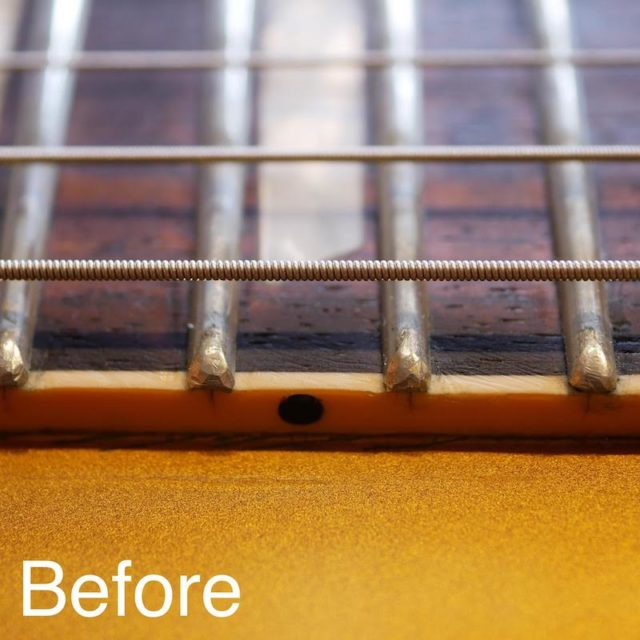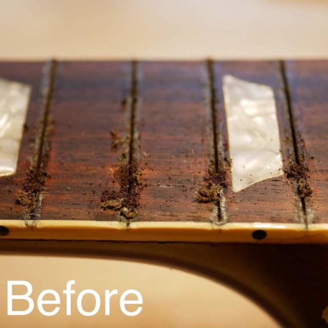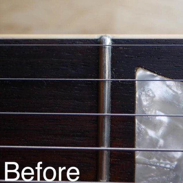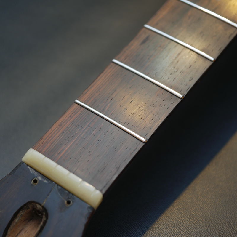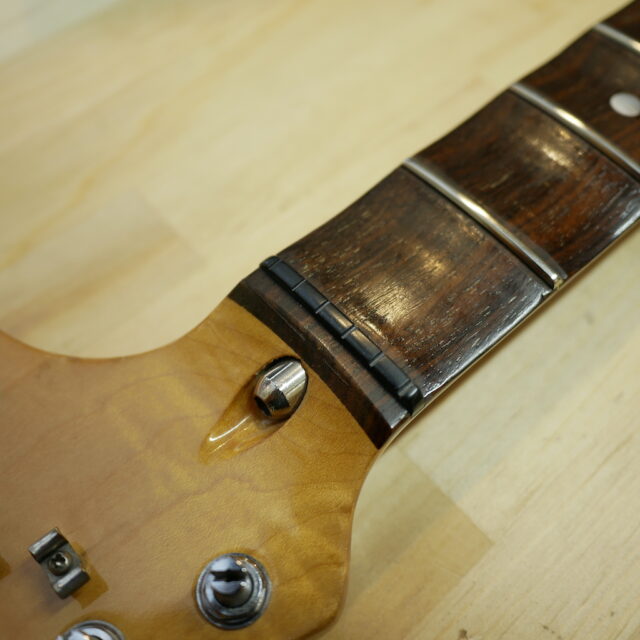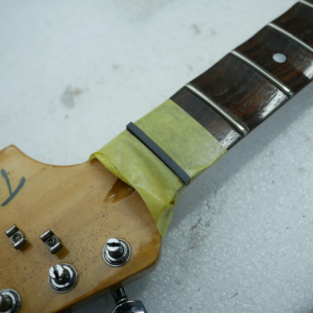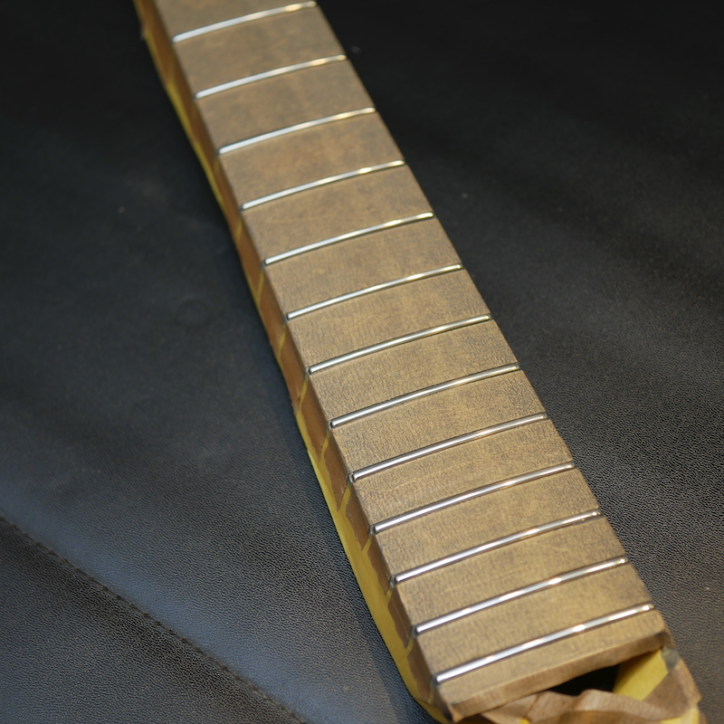 指板調整して、硬いジャンボフレットを切って曲げて打って、、、