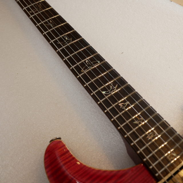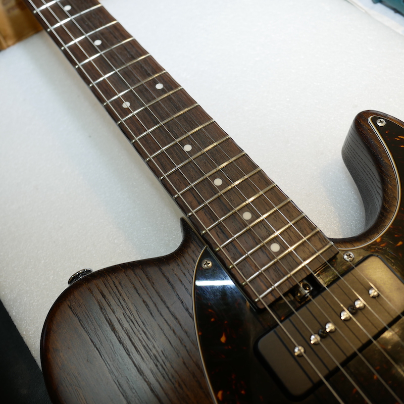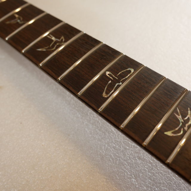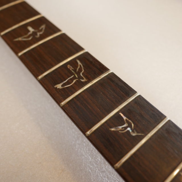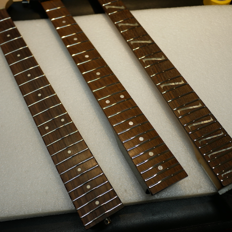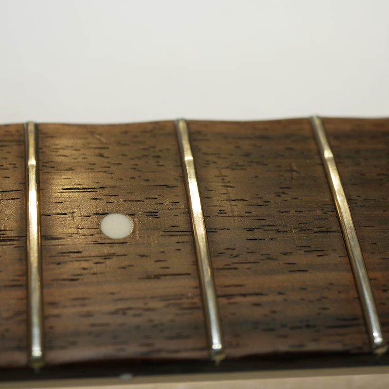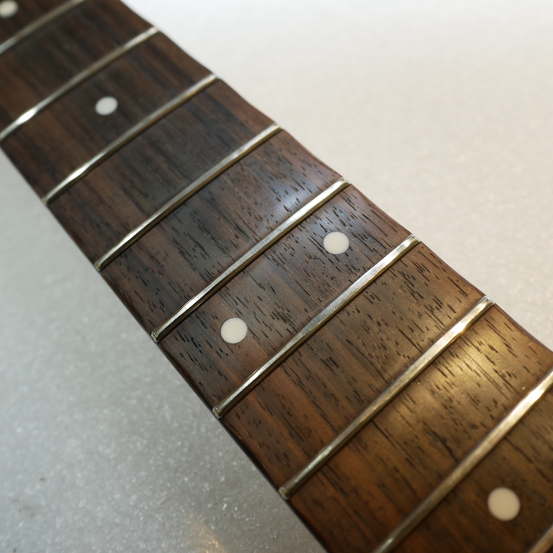 部分的に数本のフレットを打ち替えて、全体のすり合わせを行いました。