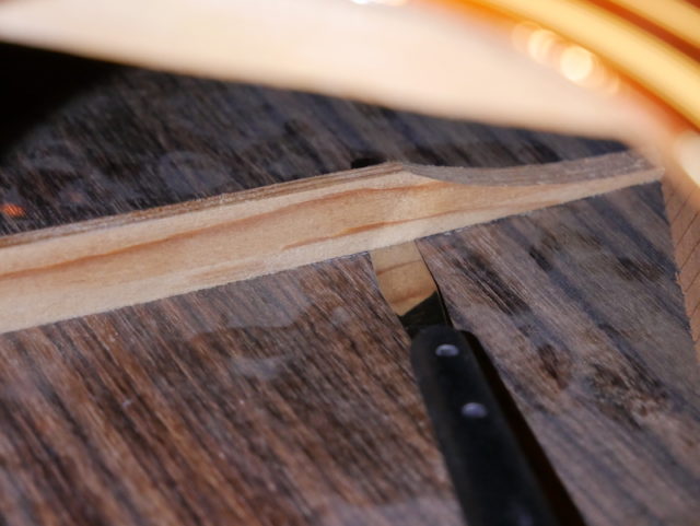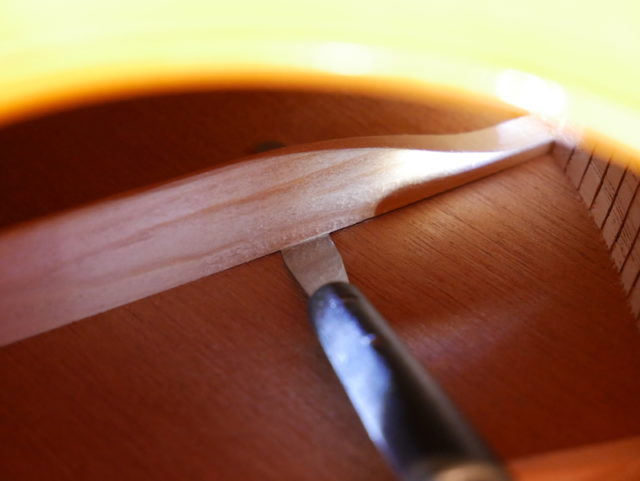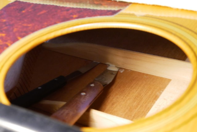 接着と行きたいですが、ウクレレはサウンドホールが小さくて、指しか入りません。